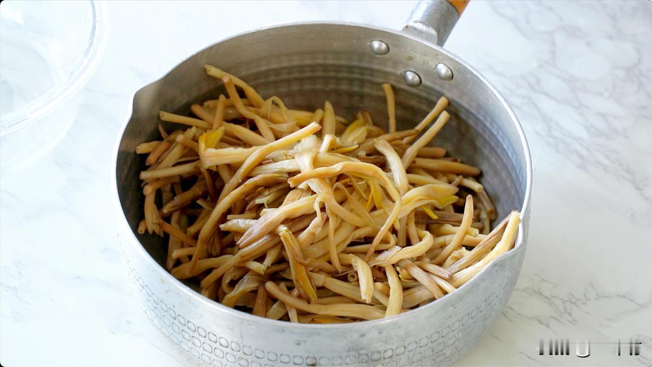 尝鲜不料竟上瘾!这道凉拌黄花菜的做法太美味! 小时候最经常吃的就是妈妈做的黄花城炖各种汤,用黄花菜做汤的颜色非常金黄好看,而且黄花菜还非常解油腻,最常吃的就是黄花菜多猪蹄汤或者排骨汤,不知道大家有没有吃过?[可怜] 黄花菜营养丰富,不仅可以用来烹炒、煲汤,还能做成凉拌菜来食用。大家用黄花菜为主要食材制作一道味道爽口的菜肴。[碰拳] 今天我们要来做一款非常好吃的凉拌黄花菜,适合夏天必备的小凉菜,做法非常的简单,一款酱汁就搞定,轻松做起来。[奋斗] 制作流程: 1、黄花菜泡制1个小时清洗干净,然后我们锅中烧开热水,把我们泡制好或者新鲜的黄花菜下去锅中煮3分钟左右,这个步骤也很重要我们的黄花菜一定要煮透煮熟,不然还是有点轻毒起来对身体不好。[心] 2、把黄花菜用手挤压出水分,水分太多吃起来影响口感。 3、挤干的黄花菜头用剪刀剪掉,我们调制一款酸辣口的酱汁,这款酱汁可以根据个人的口味进行微调。下去青红辣椒圈30克 白糖20克 蒜米30克蚝油10克 生抽10克 盐4克 辣鲜露8克 陈醋20克 香油10克 !这款酱汁的口味就是酸辣口,也可以调制成酸甜口,或者红油口味都可以。[比心] 我们的凉拌黄花菜,口感脆脆的很好吃,而且还一点都不油腻酸辣可口。可以在开饭前吃的一道小凉菜非常适合,