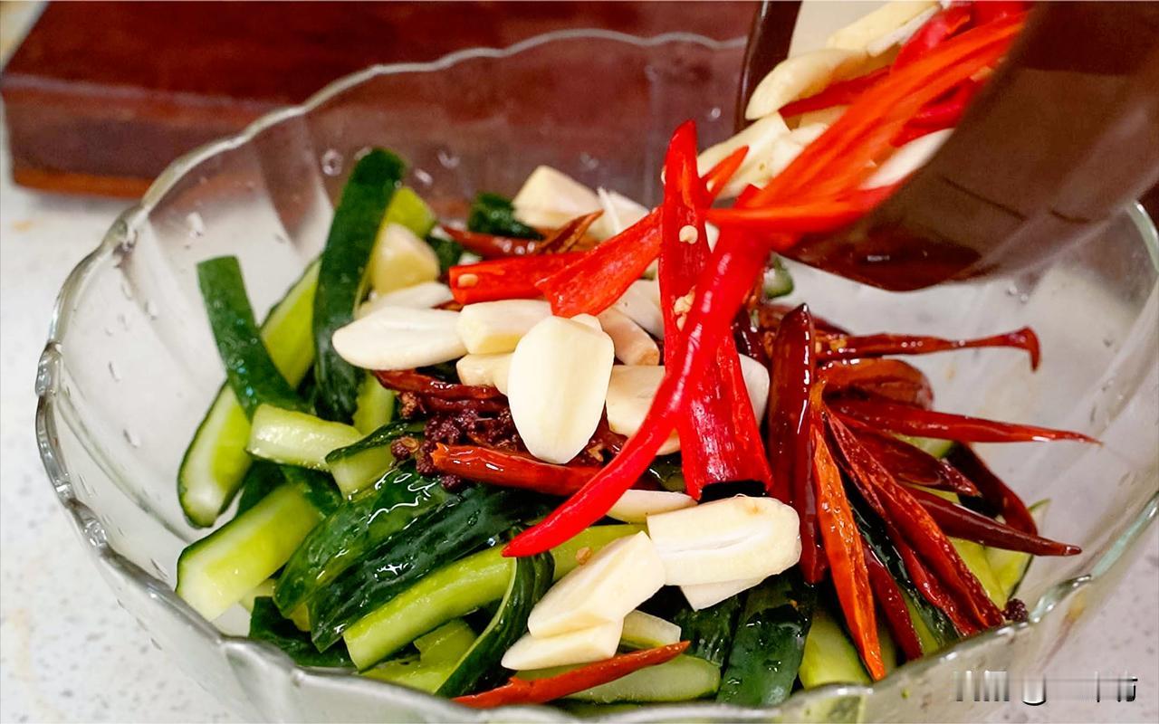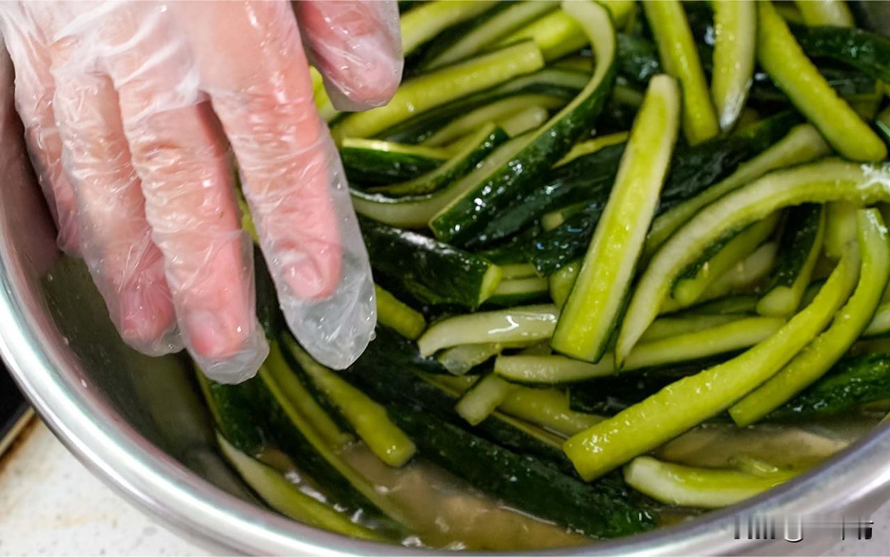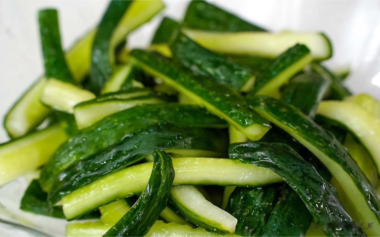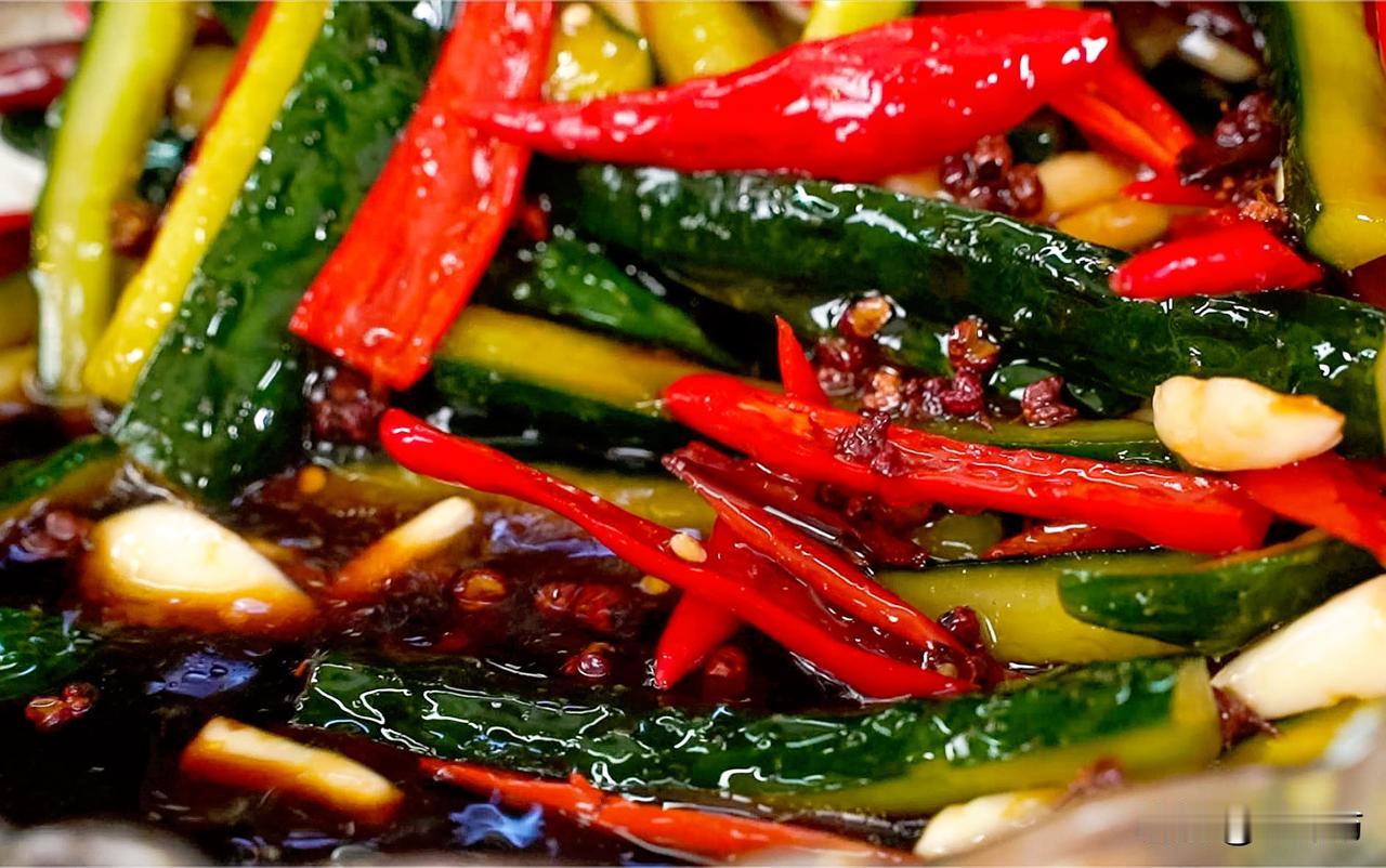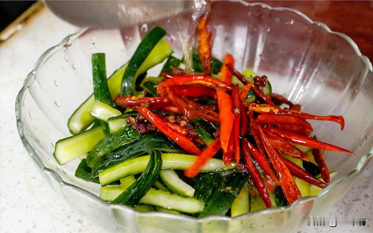 口感脆爽,绝对好吃!这些拌黄瓜做法,值得一试! 今天我们来做一道非常好吃可口的腌黄瓜,黄瓜口感非常脆爽好吃!做法简单又好吃。[比心] 麻辣盐黄瓜配料: 黄瓜500克 小米辣适量 蒜片适量 腌制黄瓜调料:盐20克 糖20克 调料:生抽15克 醋10克 糖5克 香味5克 纯净水40克 油料:花椒10克 干辣椒10克[憨笑] 制作流程: 1、黄瓜去瓜馕,然后再切成条。 2、我们把切好的黄瓜条加入白糖20克腌制 10克盐 腌制30分钟,然后黄瓜慢慢就会出水,这样黄瓜更脆更好吃,再用清水冲洗2次。[惊喜] 3、把清洗干净的黄瓜条挤压干水分,这样更脆 4、小米辣一分为二,然后取出辣椒籽,因为只有辣椒皮更好吃![谢谢] 5、油温160度左右,再加入花椒10克 干辣椒10克 快速炸下5秒左右就可以,把我们做好的糊辣油淋在黄瓜条上。 6、切好的小米辣和蒜片放入黄瓜条上,加入生抽15克 醋10克 糖5克 香味5克 纯净水40克。保鲜膜封好,放冰箱12小时就可以打开吃了![心] 我们的腌制黄瓜就制作完成啦!大家有什么更好吃的做法欢迎留言区讨论!美食 美食教程