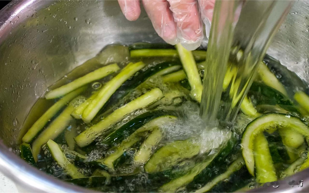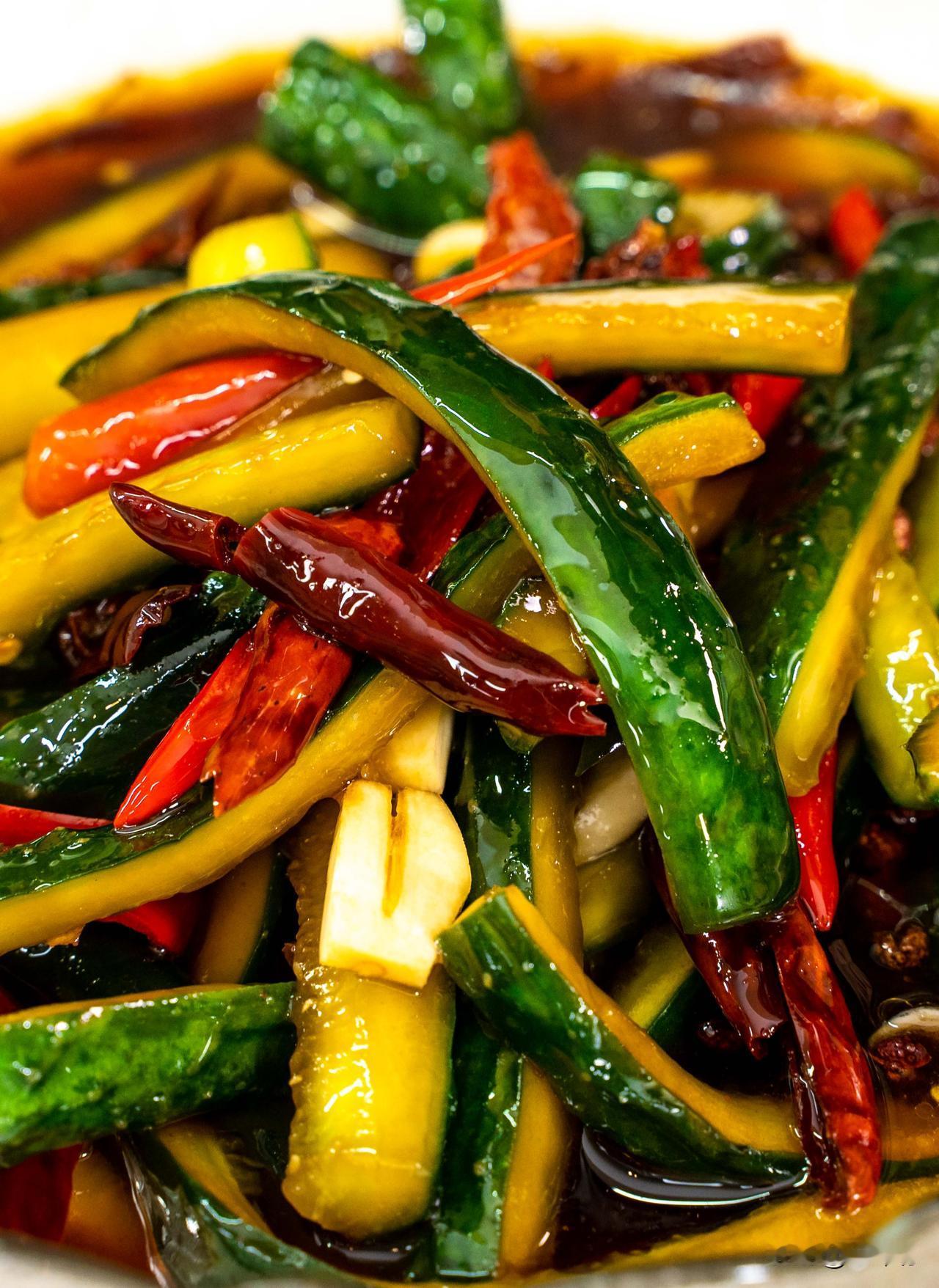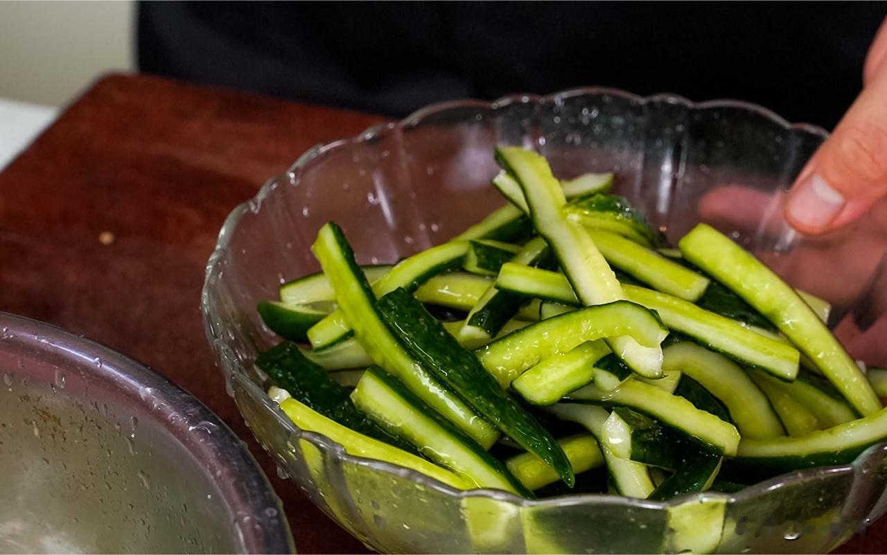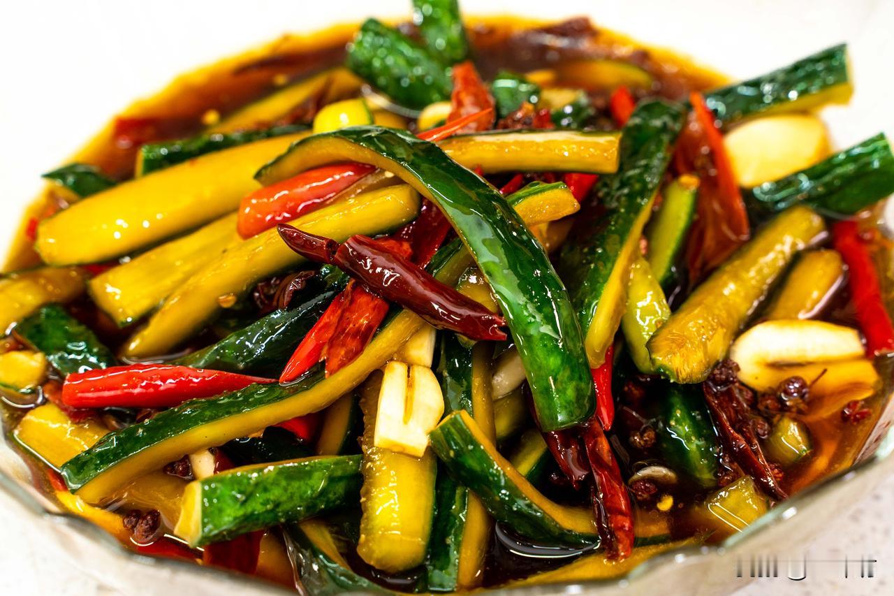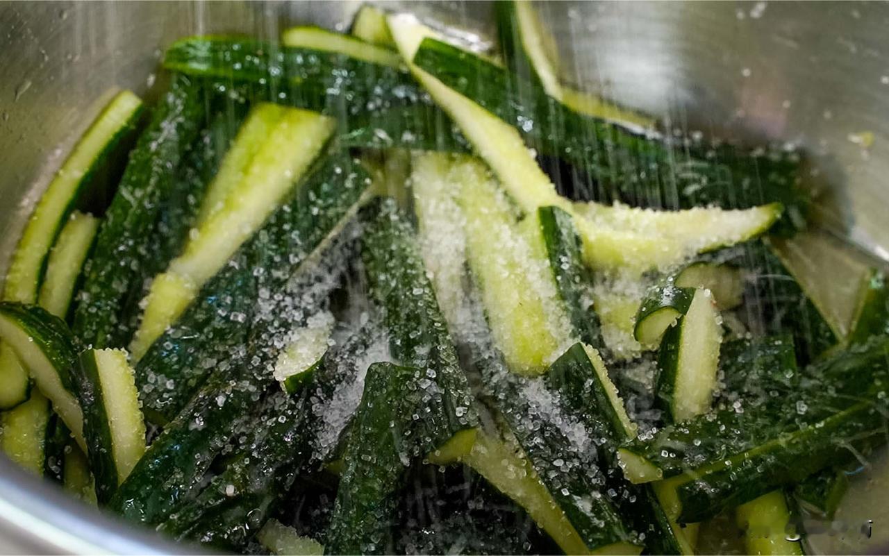 口感脆爽,绝对好吃!这些拌黄瓜做法,值得一试! 今天我们来做一道非常好吃可口的腌黄瓜,黄瓜口感非常脆爽好吃!做法简单又好吃。[比心] 麻辣盐黄瓜配料: 黄瓜500克 小米辣适量 蒜片适量 腌制黄瓜调料:盐20克 糖20克 调料:生抽15克 醋10克 糖5克 香味5克 纯净水40克 油料:花椒10克 干辣椒10克[憨笑] 制作流程: 1、黄瓜去瓜馕,然后再切成条。 2、我们把切好的黄瓜条加入白糖20克腌制 10克盐 腌制30分钟,然后黄瓜慢慢就会出水,这样黄瓜更脆更好吃,再用清水冲洗2次。[惊喜] 3、把清洗干净的黄瓜条挤压干水分,这样更脆 4、小米辣一分为二,然后取出辣椒籽,因为只有辣椒皮更好吃![谢谢] 5、油温160度左右,再加入花椒10克 干辣椒10克 快速炸下5秒左右就可以,把我们做好的糊辣油淋在黄瓜条上。 6、切好的小米辣和蒜片放入黄瓜条上,加入生抽15克 醋10克 糖5克 香味5克 纯净水40克。保鲜膜封好,放冰箱12小时就可以打开吃了![心] 我们的腌制黄瓜就制作完成啦!大家有什么更好吃的做法欢迎留言区讨论!美食 美食教程