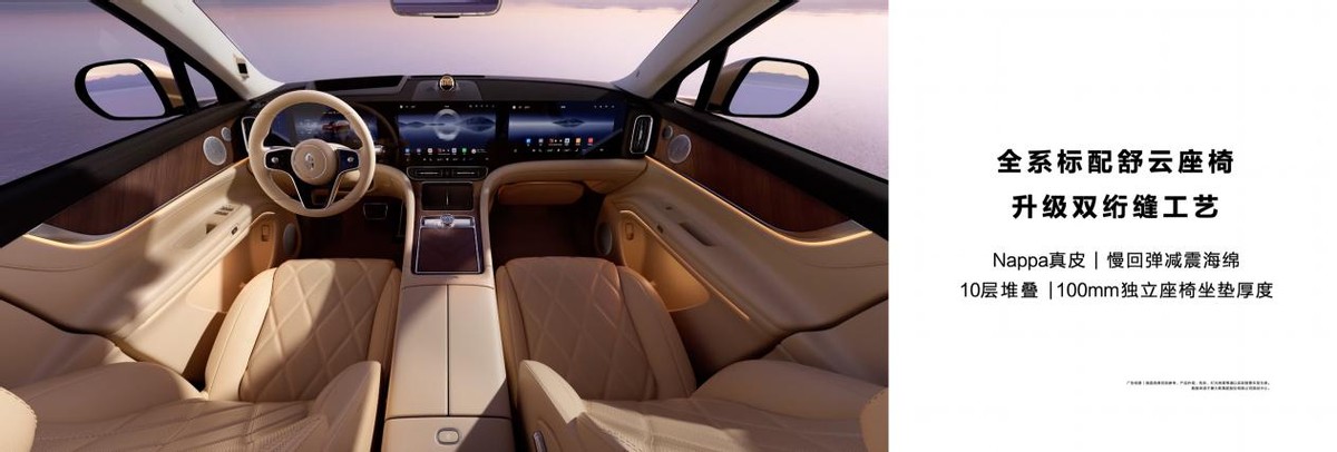 座舱方面,新车提供大五座和享六座两种方案,全系标配舒云座椅,采用优质Nappa真皮,为用户打造百变奢享空间。其中,大五座二排可选奢享零重力座椅套装,新增物理按键,支持一键即享;享六座主驾二排座椅升级电动腿托,坐拥奢适舒享体验。
