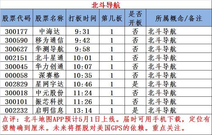 北斗导航概念股均为首板涨停,真正的龙头自可见分晓。