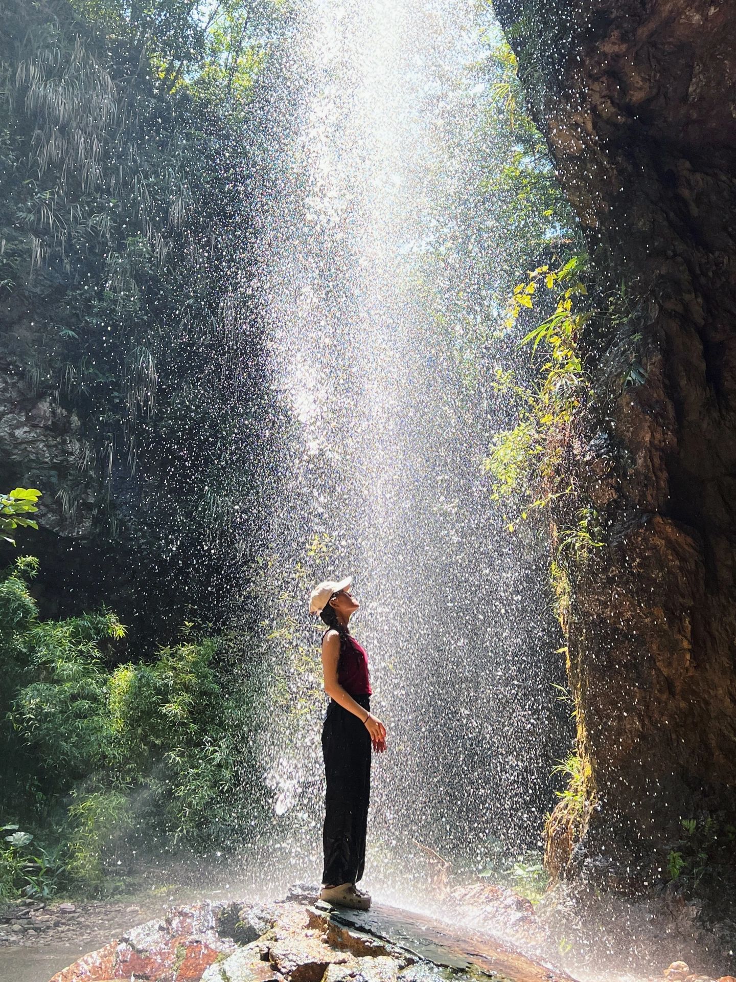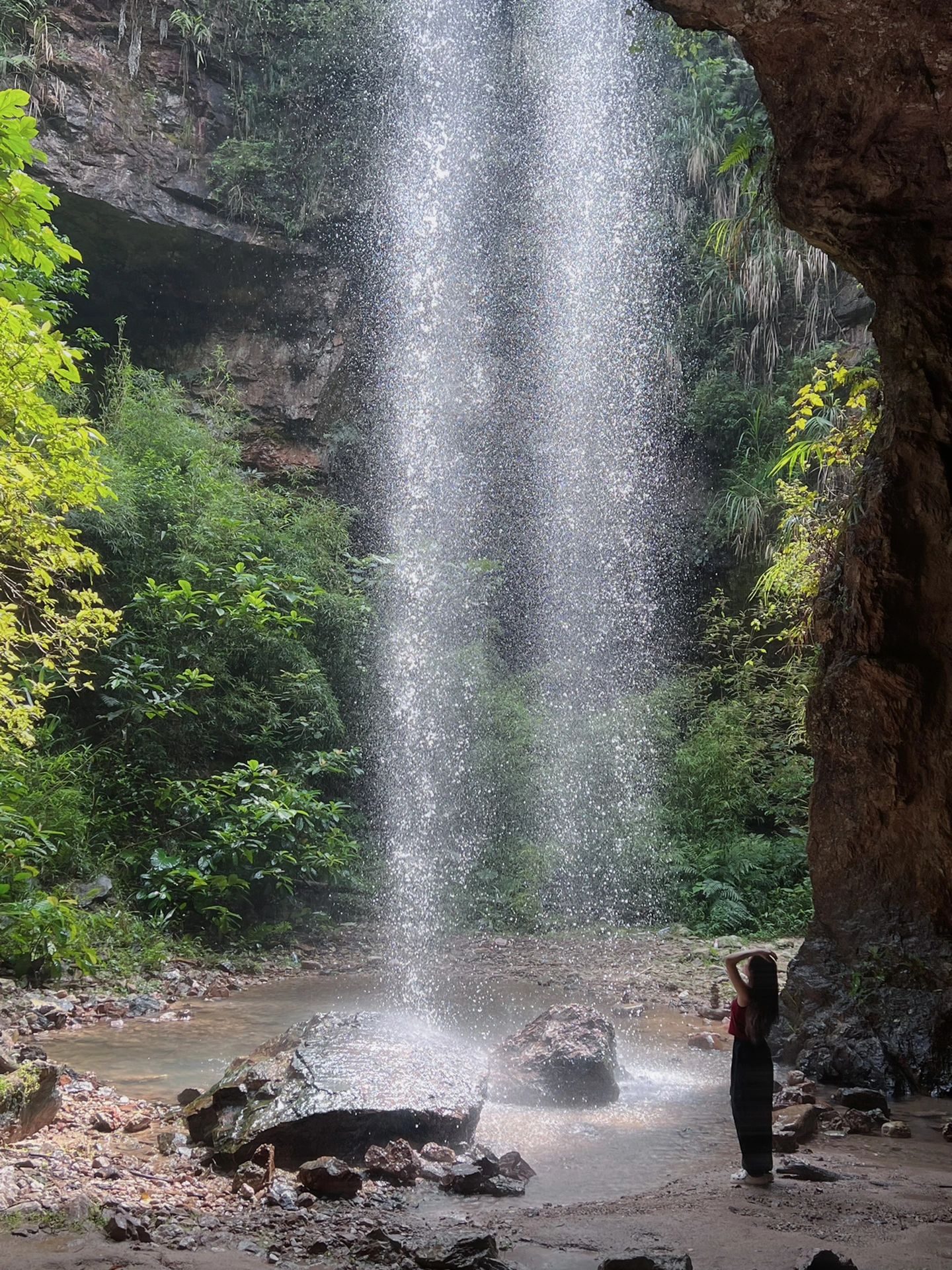 🎒要带一双凉拖鞋或者溯溪鞋,岩洞前一百米淌着小河流走,这段路小心头顶的树叶,上面很多毛毛虫🐛,可以撑着伞走或者戴帽子。