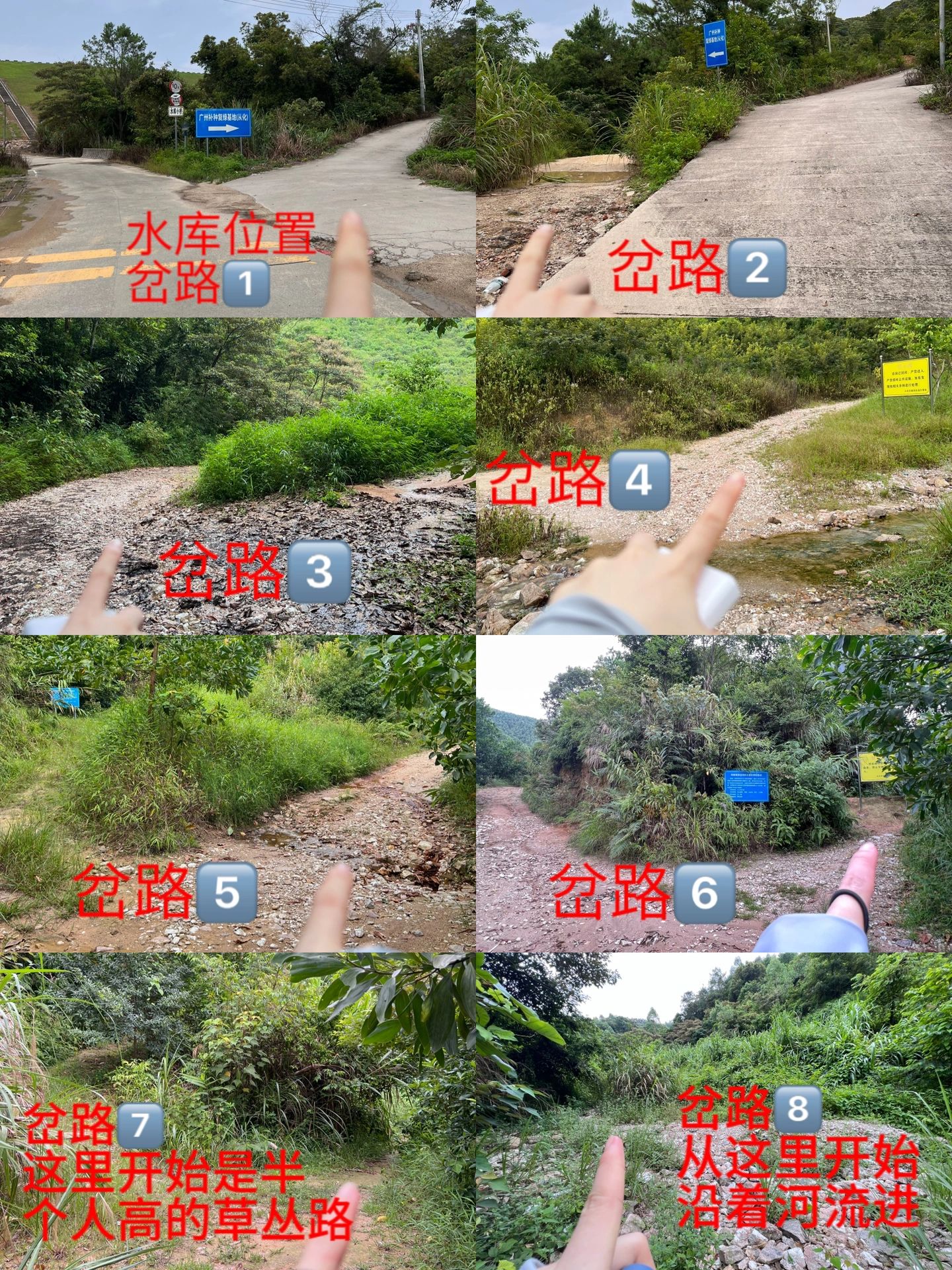 到水库时的岔路口有块写着“广州补种复绿基地”的蓝色牌子往箭头所指方向走,这里开始要跟着两步路的轨迹走。