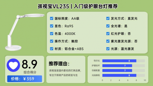 三、孩视宝VL235 | 入门级护眼台灯推荐