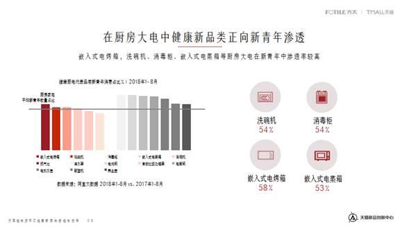 上述报告称,“新青年群体”即80后、90后一代,正成长为厨电消费市场的最大主力。其中引用阿里大数据,2017年购买厨电的消费者中,35岁及以下的“新青年”占比超6成,一些新兴厨电品类在这一消费群体中渗透率达到44%以上。而这一群体对便捷、健康的需求更为明显,受此影响在今年1~8月份,嵌入式蒸箱的增速就高达55%。