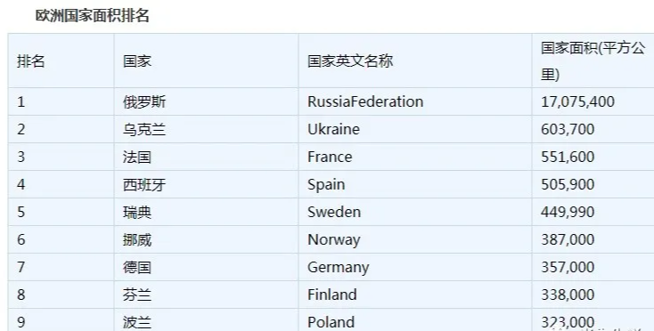 在欧洲,乌克兰面积就有60万平方公里,仅次于俄罗斯(1710万平方公里,欧洲部分的国土面积约为429万平方千米),法国只有55万平方公里,英国的面积在欧洲排不进前十。