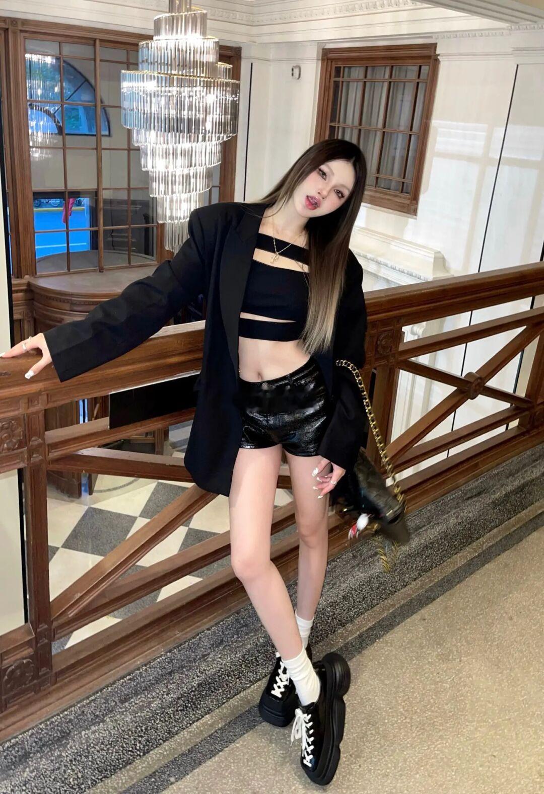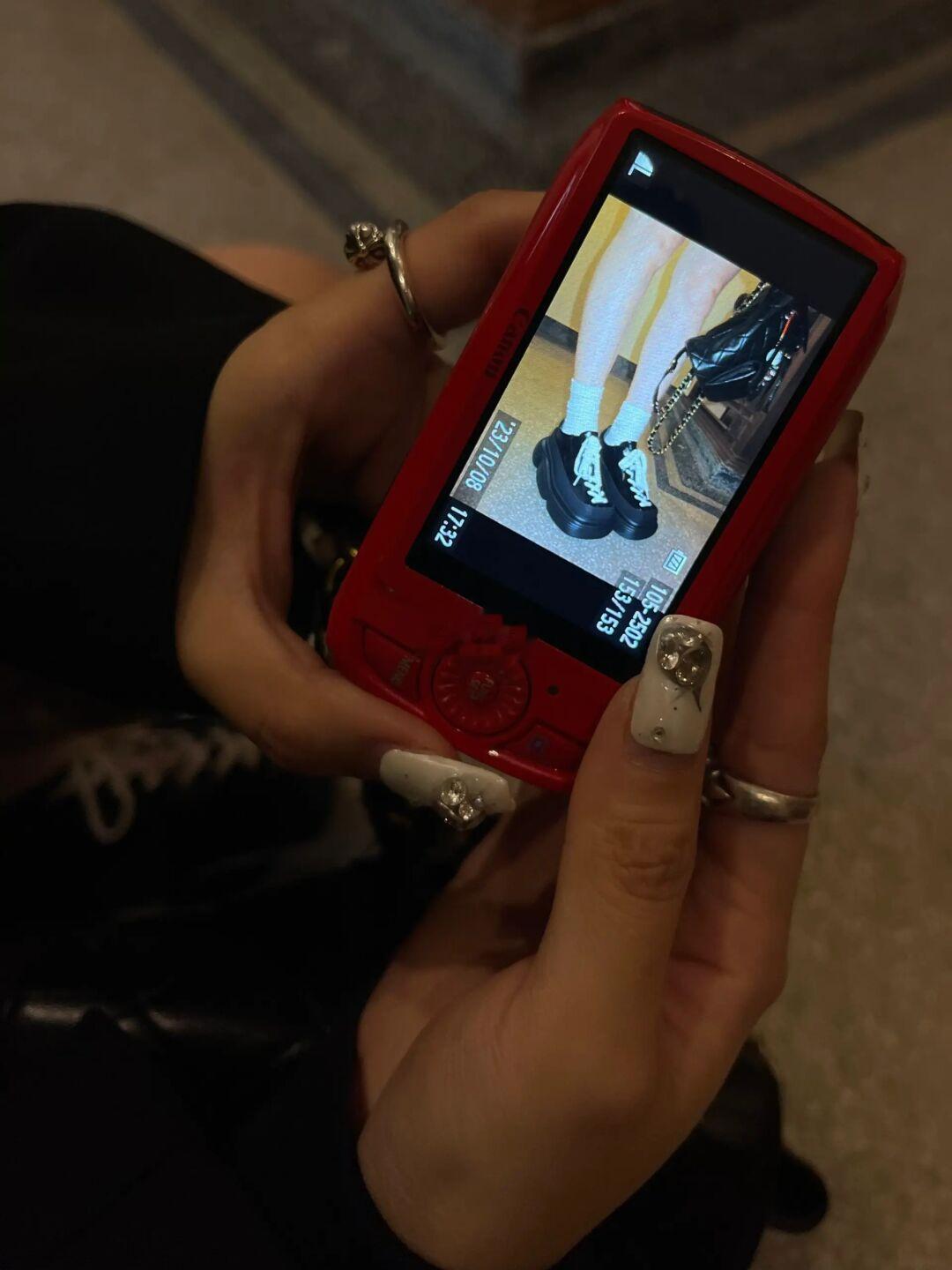 刷到newjeans hearin的猫耳朵 我也get辣 📷0.6倍俯视开闪光灯拍照 再p个猫耳朵 完美 好爱我的厚底鞋 增高显腿细 感觉自己是超模💃谁懂棒棒糖绑带小皮鞋