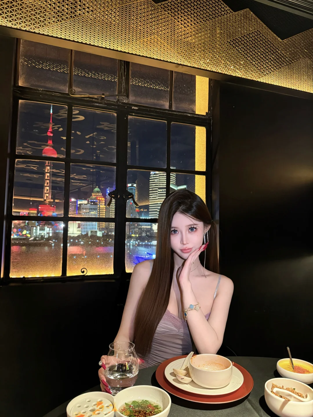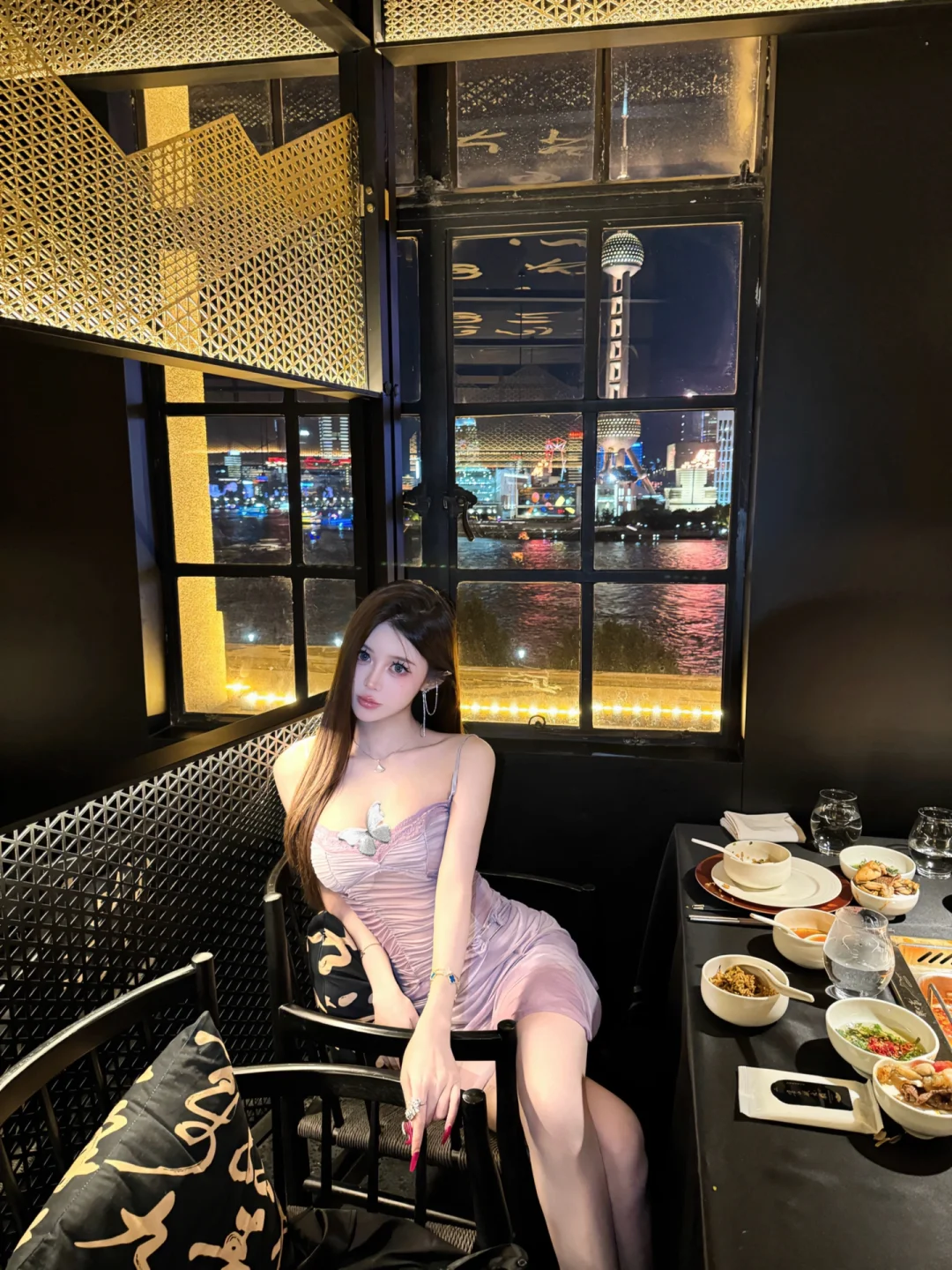 外滩观景位不错的火锅店 味道还不错 点了套餐不到2k 黑松露炒饭最好吃 氛围感餐厅 约会餐厅 火锅 火锅店拍照 餐厅拍照姿势 御姐 包臀裙 上海餐厅