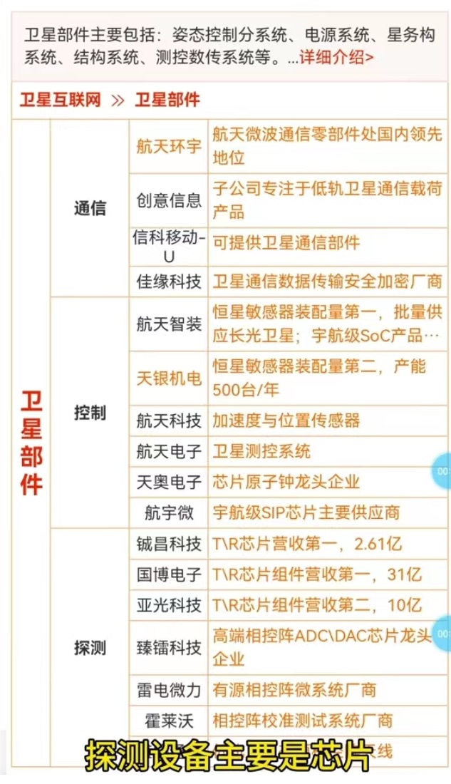 卫星互联网细分核心标的一览,请收好!