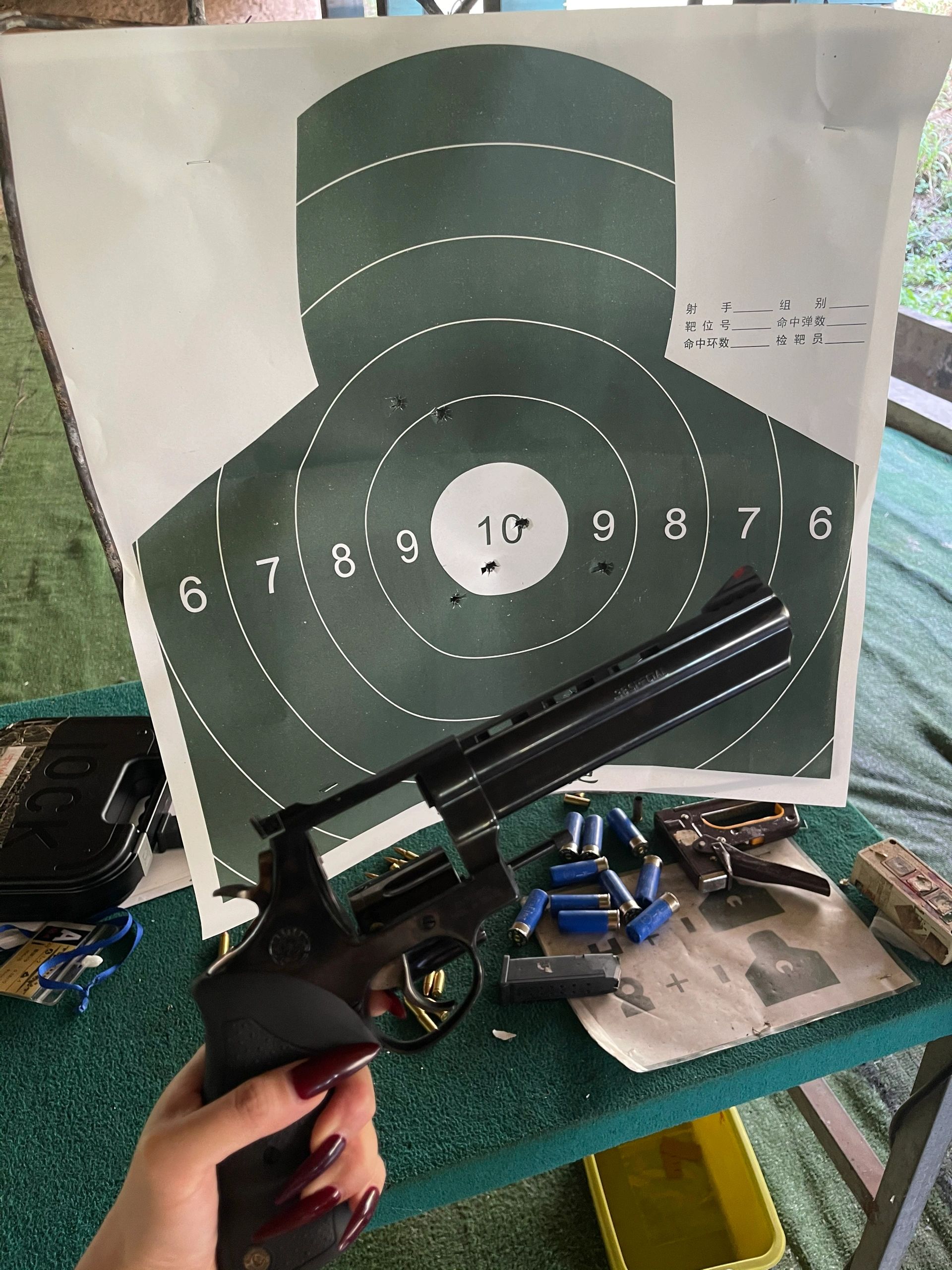 第一次尝试真🔫好刺激! 前后试了4种 多种组合可以选择内 有耳罩保护👂很新手友好 散弹枪后坐力太强 肩膀直接淤血🤣 但真的很好玩就是了 大推!!(最后是我战绩 如何如何😃 📍老挝四五国际射击场