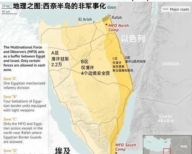 西奈半岛作为“非军事区”,这次增兵必然是经过以色列同意的。西奈半岛作为“非军事区”,以色列规定靠近加沙地带的地方可以少量驻军,西奈半岛中部、东部基本不许驻军,西奈半岛西部可以驻军。