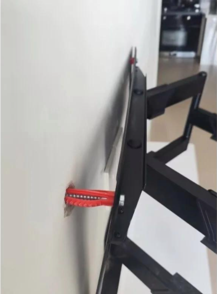 家里的电视是采用的伸缩支架,挂在墙上的!这天正在玩游戏,突然电视就向前倾倒过来!好在没掉下来!