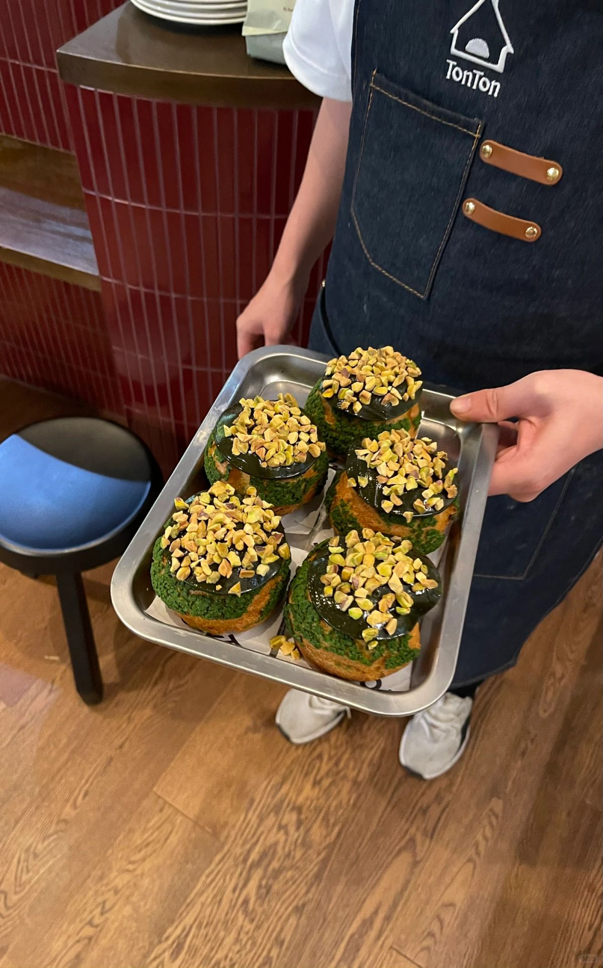 浅miu一下 下午来肉桂卷已经sold out 试了牛肉派+奶酪水果干卷 也很惊艳🥰 风格好适合慵懒的我 🍞Tonton 楼下是面包🥯楼上是三明治🥪