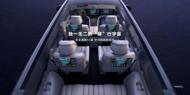屏幕M9上有10块大小不同的屏幕,除了仪表-中控-副驾的三联屏以外,还包括了32英寸的车内幕布投影、4个Maglink、75英寸的X-HUD以及车外100英寸的大灯投影。华为依托自有硬件生态体系以及全车数字软件平台,可以实现不同设备和屏幕之间的无线传输、互联互通。
