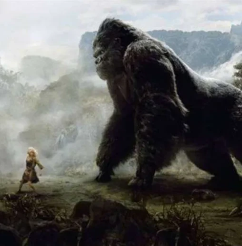 这个摄影师还是开了吧,这得要多心大的新娘才能接受这个婚纱摄影创意啊。直接就让人联想到了《金刚》中的名场面。