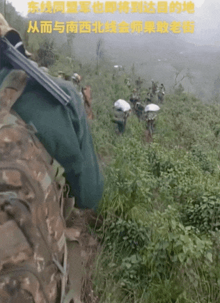 果敢同盟军正在从东面包围老街,为躲避缅军米格29战机和米35武装直升机空袭。果敢同盟军背负武器弹药粮食和饮用水,全部从山区分散行军,全副武装山地行军进入战场。