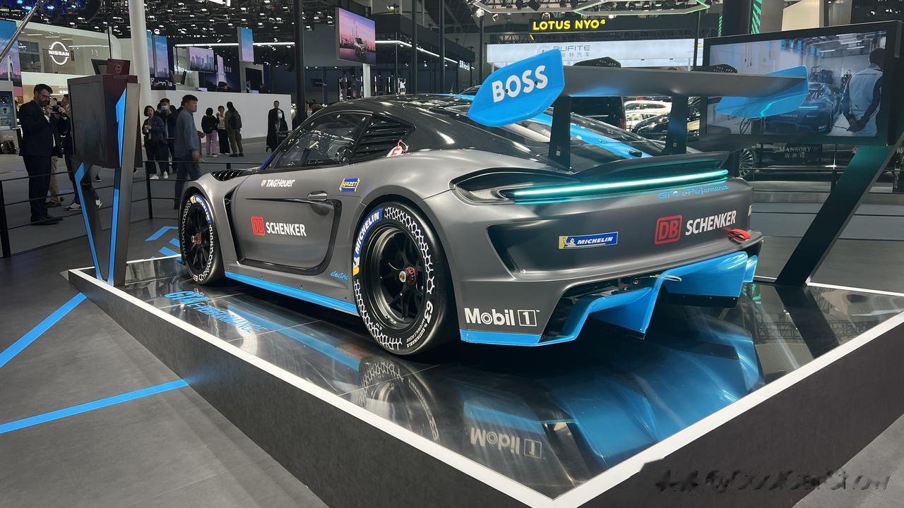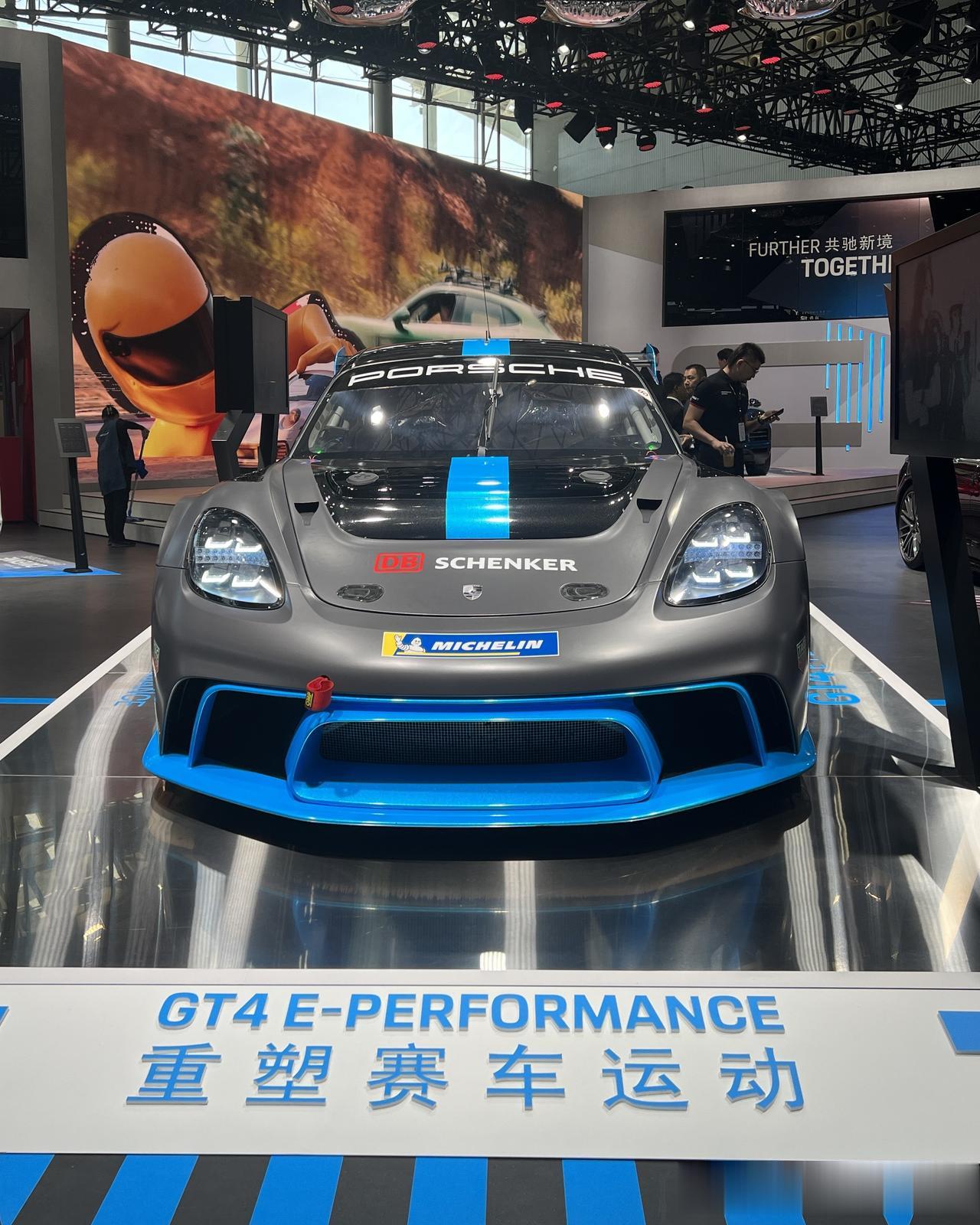 保时捷Cayman GT4 纯电赛车 尽管保时捷并没有带来市售版的首发新车,但这个展台从来就不乏看点,例如本次车展他们就带来了Cayman GT4 ePerformance 赛车,说白了就是Cayman GT4的纯电版本。 要知道目前718系列都还没纯电版本,而该车是作为验证Mission R的创新纯电驱动概念项目的测试车辆。其中底盘来自718 Cayman GT4 Clubsport,整个电机和电池技术均来自保时捷Mission R概念车。 这款赛车前后桥上配备了永磁同步电机,从而实现四轮驱动,该车在排位模式下,其最大输出功率将超过1000马力。并采用了900V的技术,电池以全充电功率从剩余电量5%充至80%仅需约15分钟,同时还能针对不同赛事调整运行模式,调整赛车功率输出,从而增加续航里程。