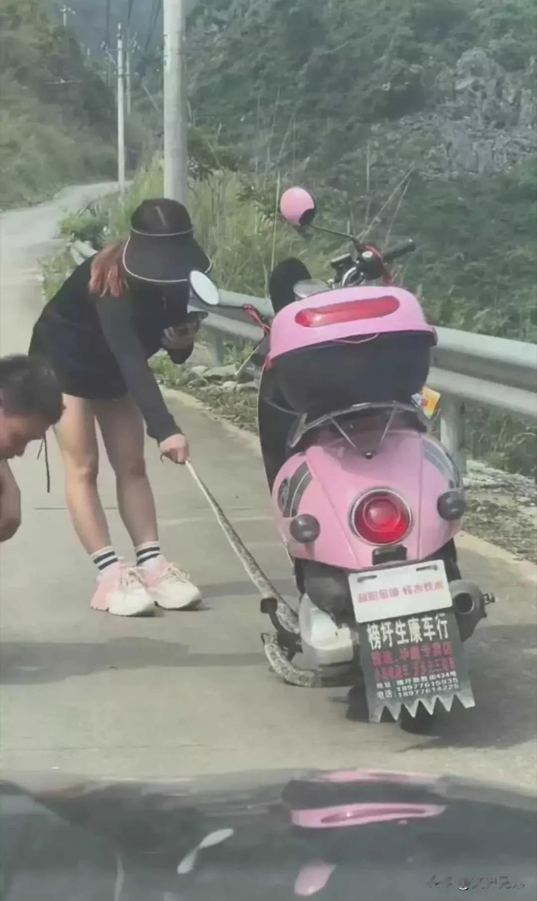 #冬日生活打卡季# 人都会被吓死。 一条蛇从电动车里冒出来。 这位女侠胆子真大啊