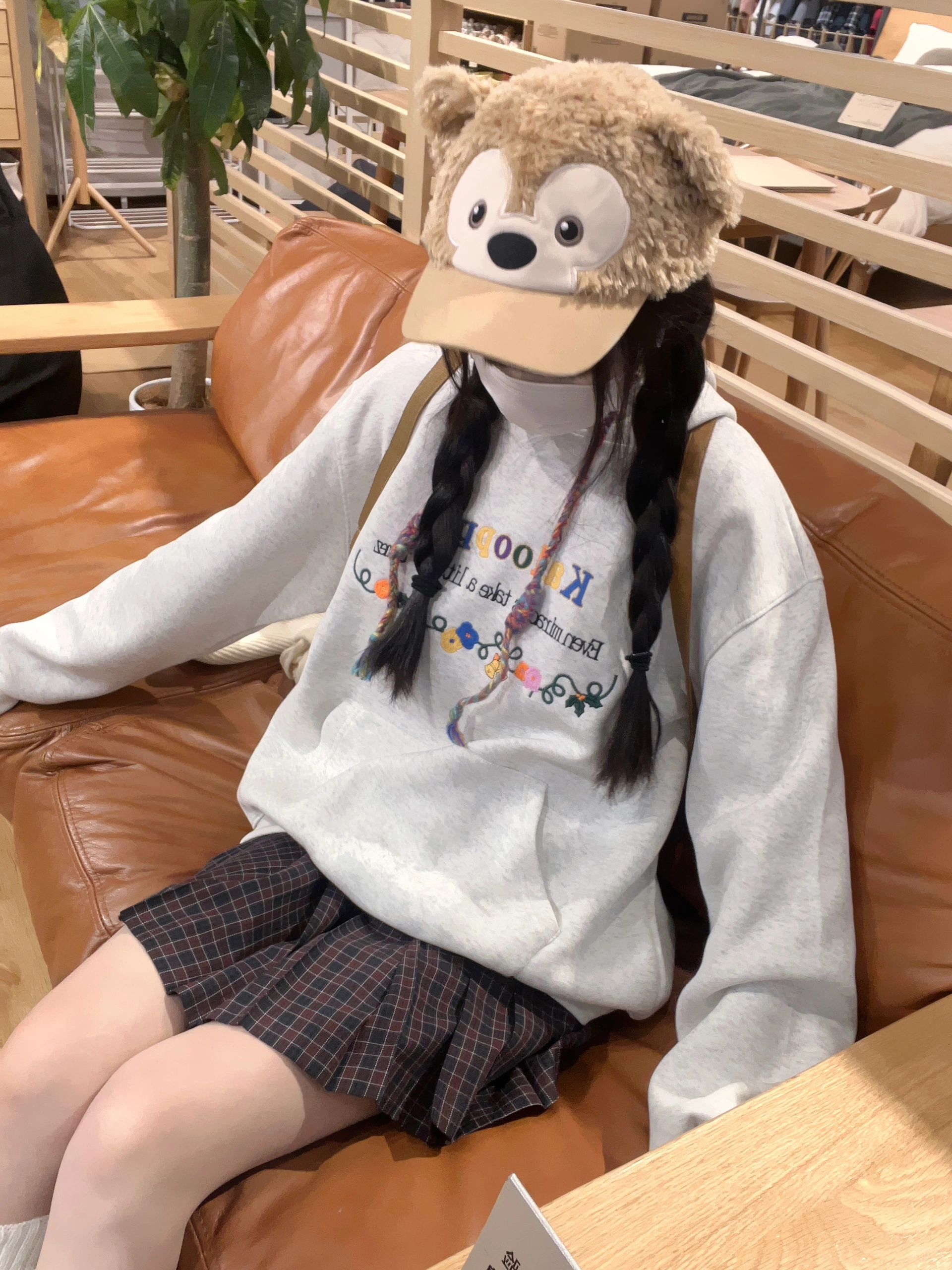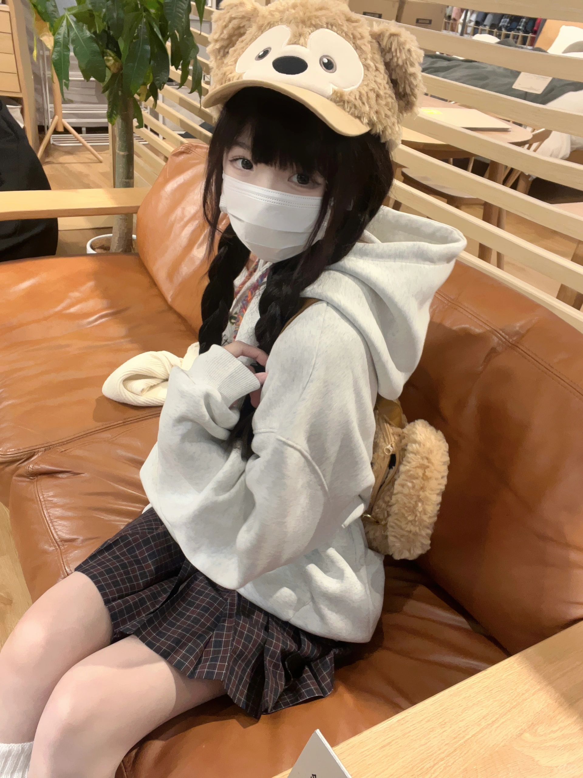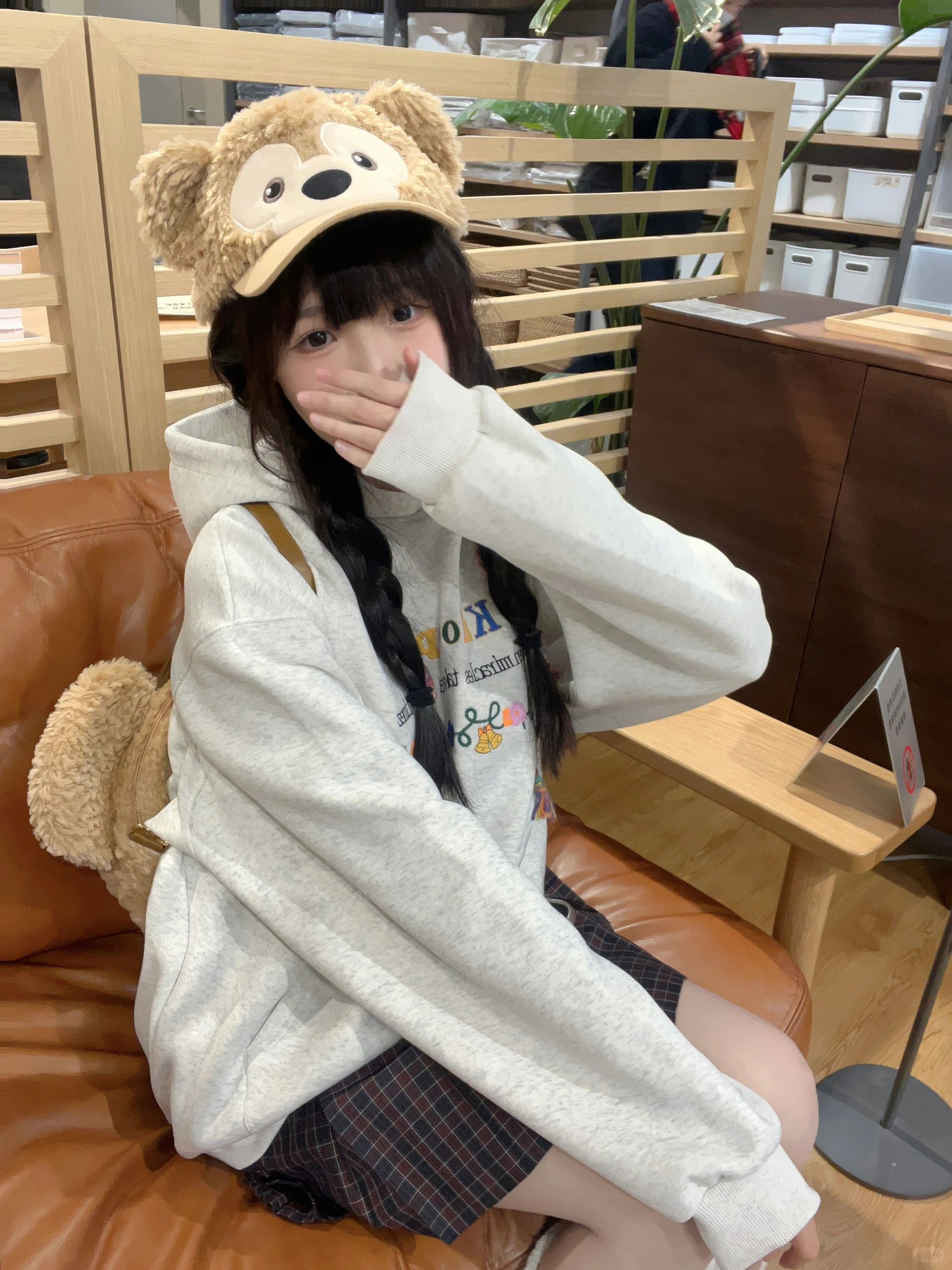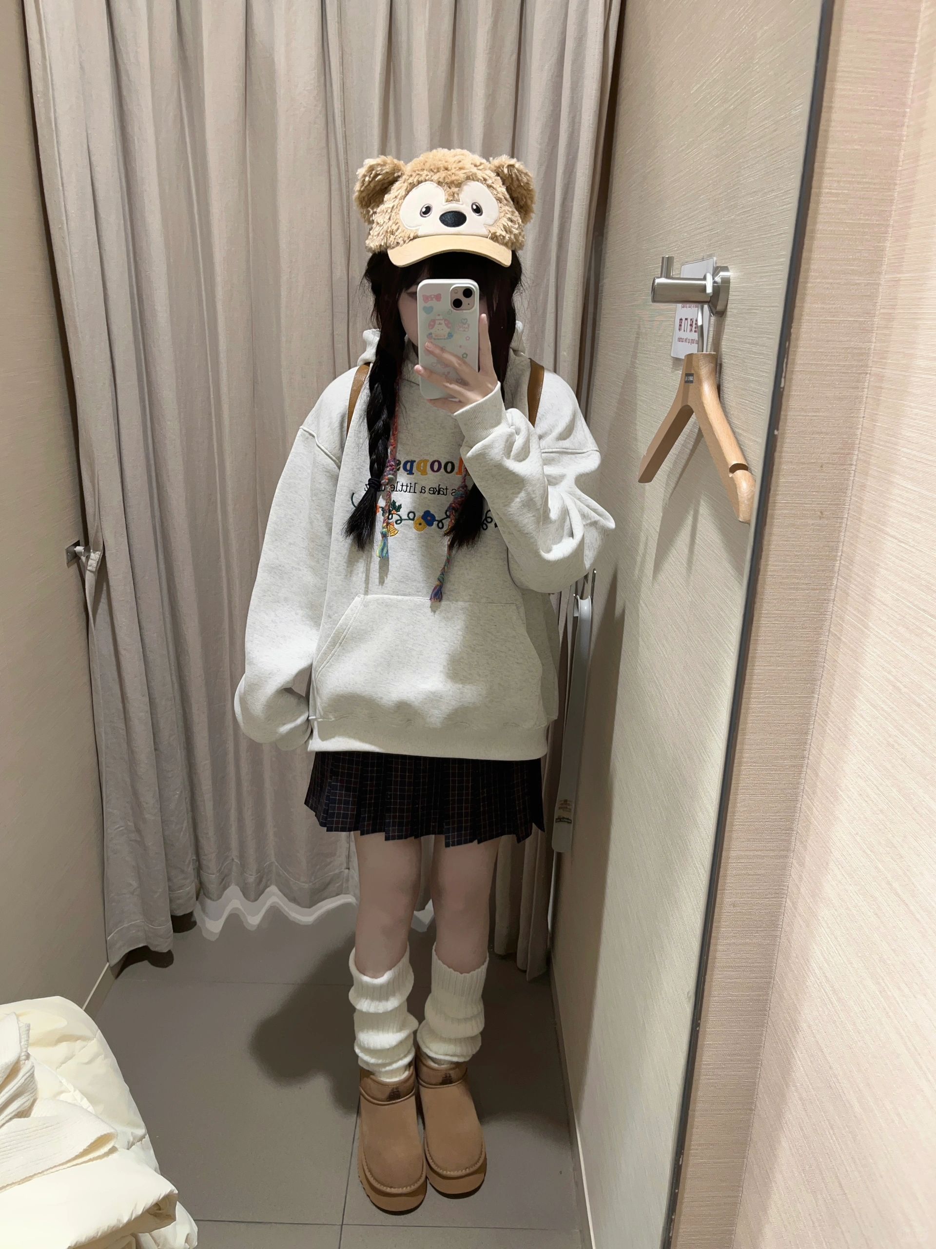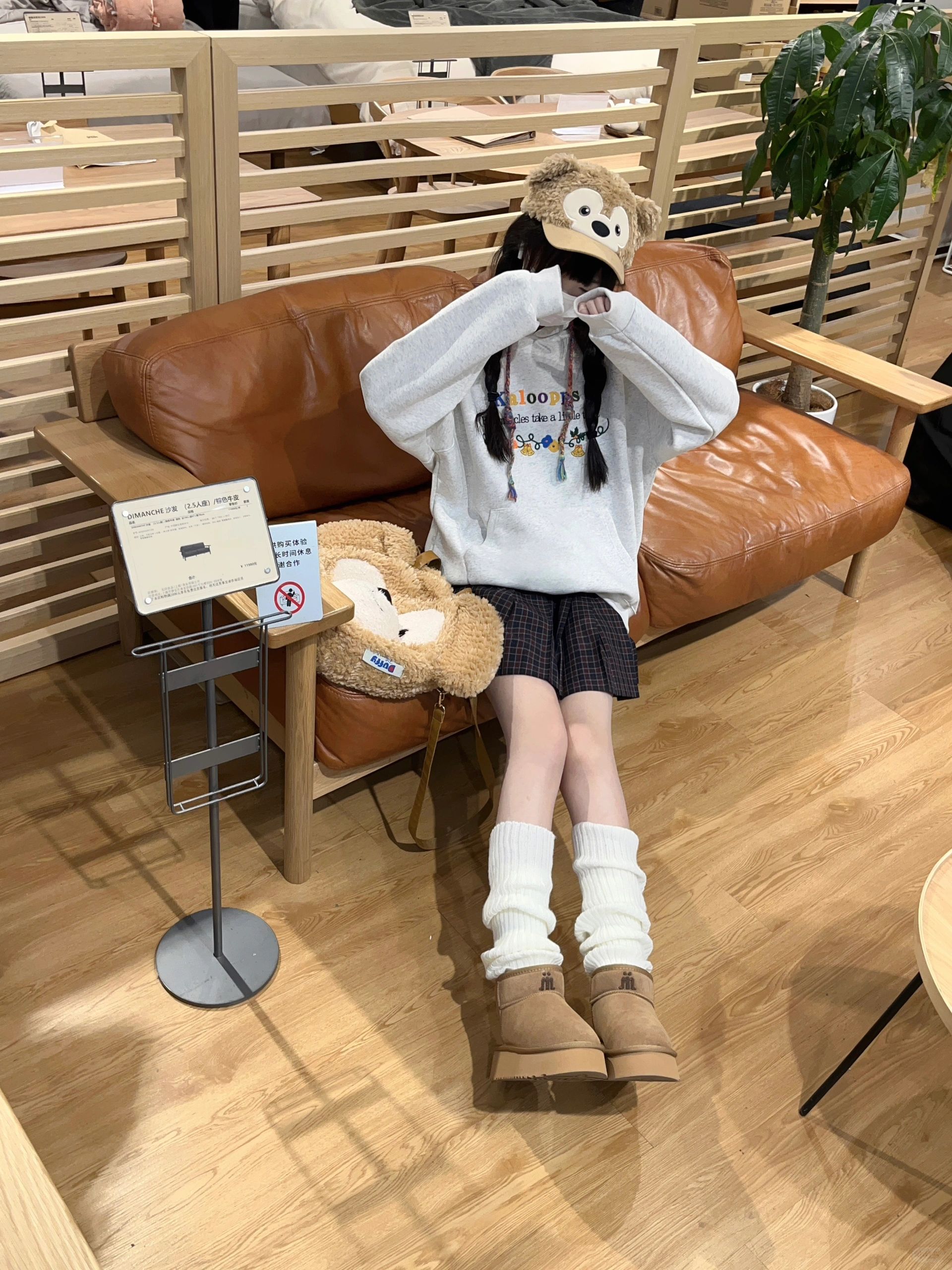 达菲帽子太百搭了!! 喜欢日常休闲的常服^ 尝试了最近很火的腿套+雪地靴 打开新世界了耶