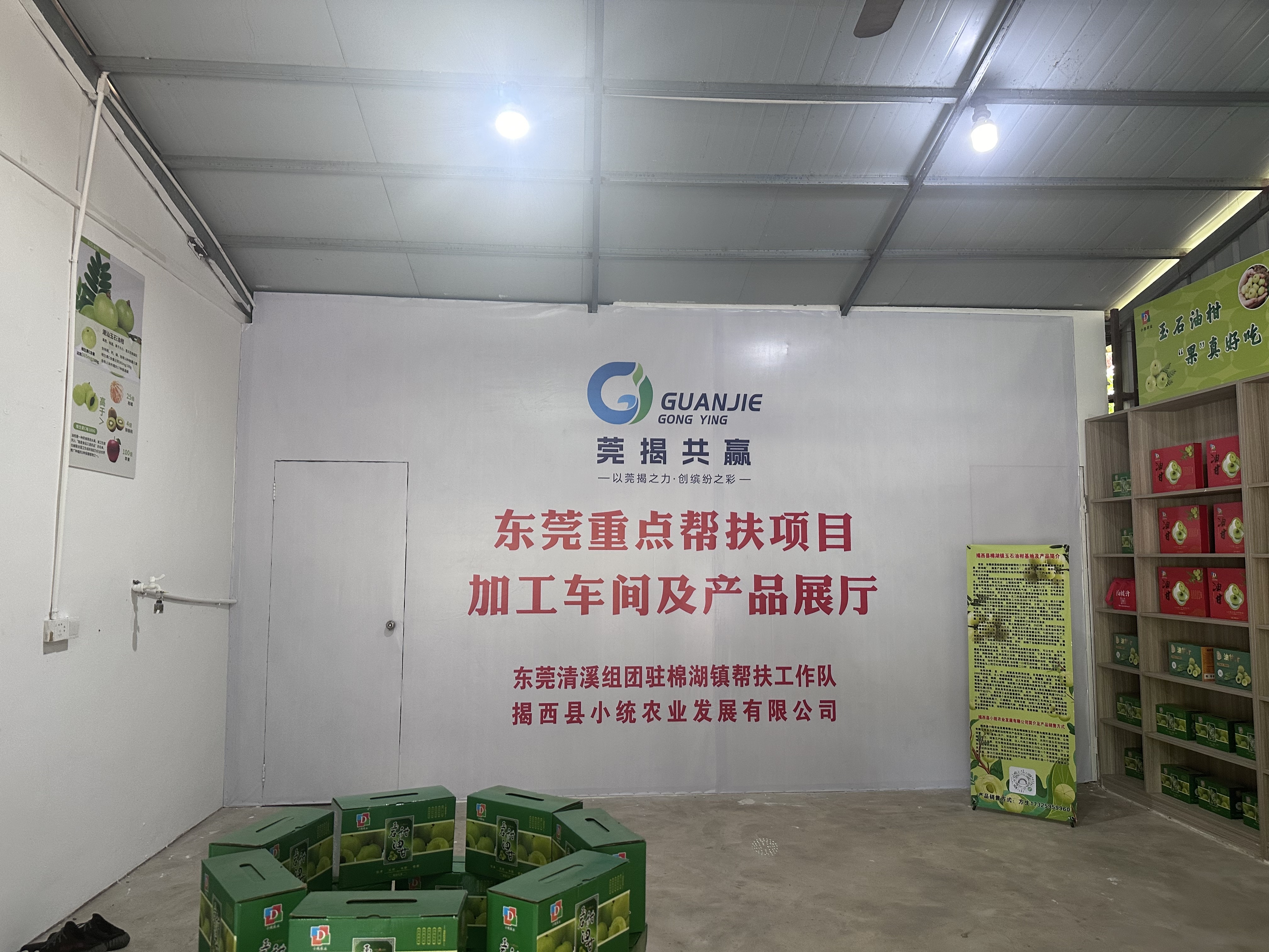为提升油柑果的附加值,做大做强油柑产业,2023年,驻棉湖工作队协助镇政府投入帮扶资金50万元,助推玉石村委与大统公司以延长油柑果产业链为重要抓手,合力共建揭西县小统农业发展有限公司,引进油柑汁生产工艺,建立油柑临时深加工车间,购置自动化机器设备对油柑进行精深加工,制成热销市面的养生饮品:油柑汁。