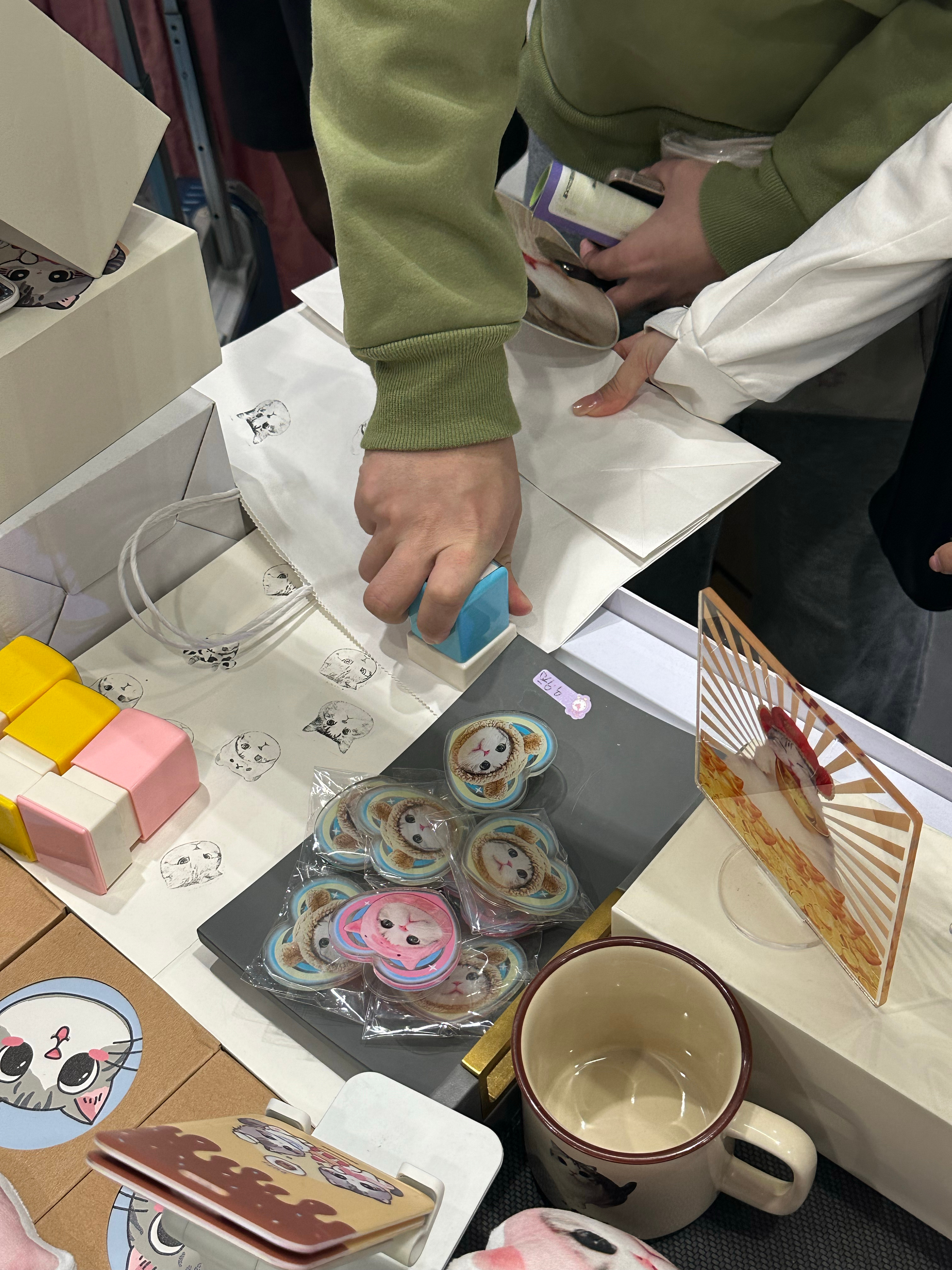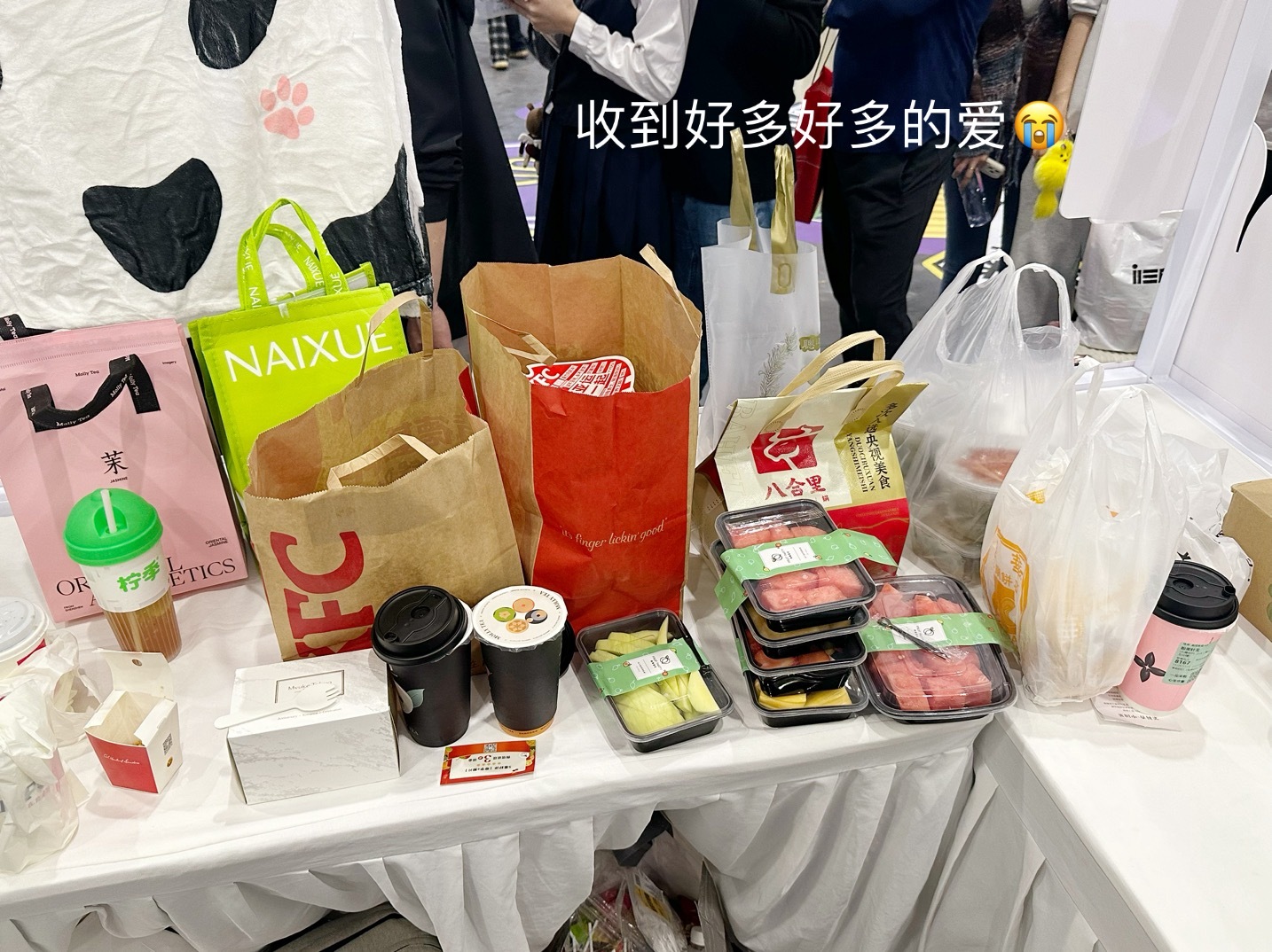 摆摊结束啦!这三天虽然累但是真的好开心!!!!这个展馆位置真的挺偏的,真的谢谢远道而来的大家[苦涩][苦涩][苦涩]太感动了真的!!!!还收到好多很有心意的小礼物和吃的,还有今天在福田领证又马上赶过来找我们的情侣!太感动了[抱一抱][抱一抱]祝福捏!