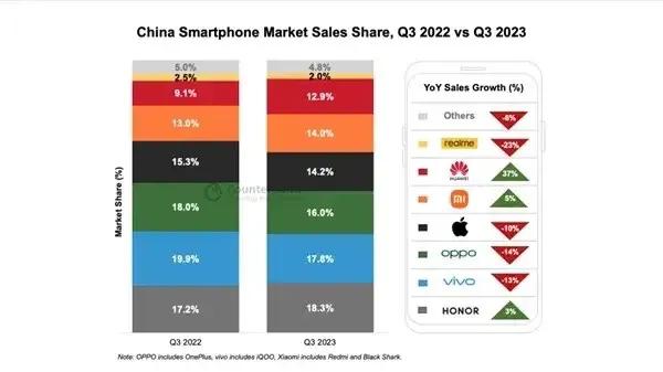 太tm离谱了。数据一出炉,库克傻眼了!本以为降价就能促进销量了,但是实际销量反而适得其反,国产手机简直是不给苹果留活路啊! 全球著名的调查机构Counterpoint公布了最近的手机市场份额报告,苹果手机在中国市场的份额急剧下滑,份额仅为14.5%,同比减少了10%,而且今年的iPhone15发布没多久就降价了。 而国产手机可以说高歌猛进,麒麟9000S和5G的回归,实在是涅槃重生,可喜可贺,摆脱了国外技术的封锁,消费者也是非常喜爱,上市仅仅几秒钟就售罄了,到现在还是抢购的状态。不仅如此,今年的xiaomi14表现也是异常的出色,十天就卖出了144万台,不少门店甚至出现了排队抢购的情况。 不得不说,iphone每年挤牙膏和摆烂,确实给了国产手机很多机会,不仅高端机,很多中端机也是趁机发展,一些方面体验甚至也超越了,而且很多体验是苹果体验不到的,像120W快充,120Hz高刷,以及一两千的手机就有1tb的运存了。 最近刚发布的#OPPO Reno11# ,3D双曲面设计握持感非常不错,天玑8200性能也不错,常用的软件和游戏都很流畅,配合3200万的人像镜头,光影和质感十足。可能苹果拍照细节不错,但是Reno11的拍照质感肯定更好。