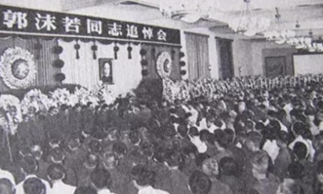 追悼会于6月16日上午在八宝山革命公墓举行。当天,数百名文化界人士前来送别。在现场,人们发现一个特别的细节:郭沫若的遗体上覆盖的党旗,是一面1927年南昌起义时期的旧旗。这面旗帜是他生前特意保存下来的,见证了他投身革命的初心。