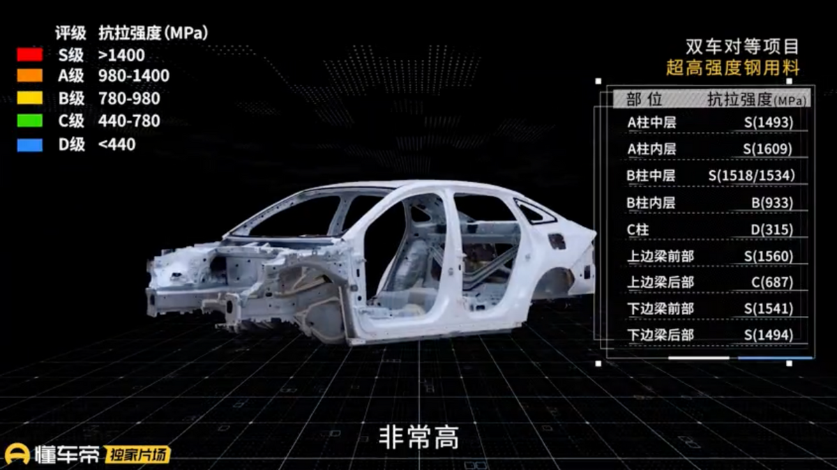 不仅如此,比亚迪的A柱使用的是拉伸强度超过1500兆帕的高强度钢,底盘方面,秦L的纯平全框式前幅车架在舒适和安全性表现更佳,副车架没有补丁,避免了共振问题。