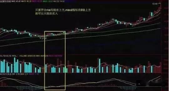 1、20日均线由下跌变为走平或者向上抬头,5日均线、10均线、20日均线刚好多头排列,macd指标处于0轴之上或者形成金叉以及拐头向上,则可以大胆买入。