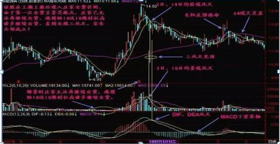 (3)当股价滑跌时,5日、10日均价线、量均线和MACD自然发生死亡交叉。
