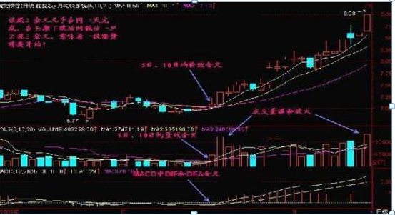 三金叉说明价格、量、MACD都在一个时点附近同时发生良性共振,一般情况下都有一波上扬行情。当三金叉出现在底部区间时,是见底回升的信号。三金叉出现在潜收集之后的强收集时,是强势上攻的信号,比如老鸭头等形态之后出现的三金叉,一旦放量通过鸭头顶就会加速上扬!