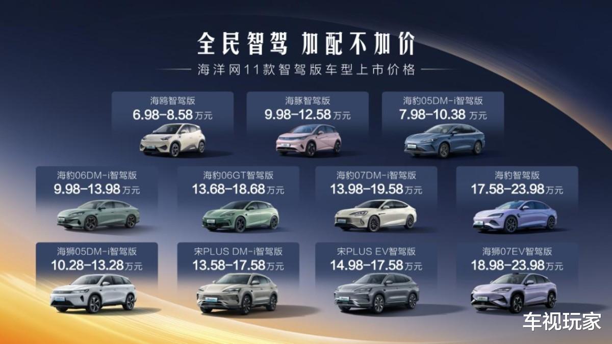 此次推出的11款车型涵盖了海豹05DM-i智驾版、海豹06DM-i智驾版、宋PLUS智驾版、海豚智驾版和海鸥智驾版等。其中,海鸥智驾版格外引人注目,作为业界首款在A00级车型中提供高阶智驾的产品,它将高阶智驾的价格门槛拉低至7万级市场,让更多消费者有机会体验前沿智能科技。