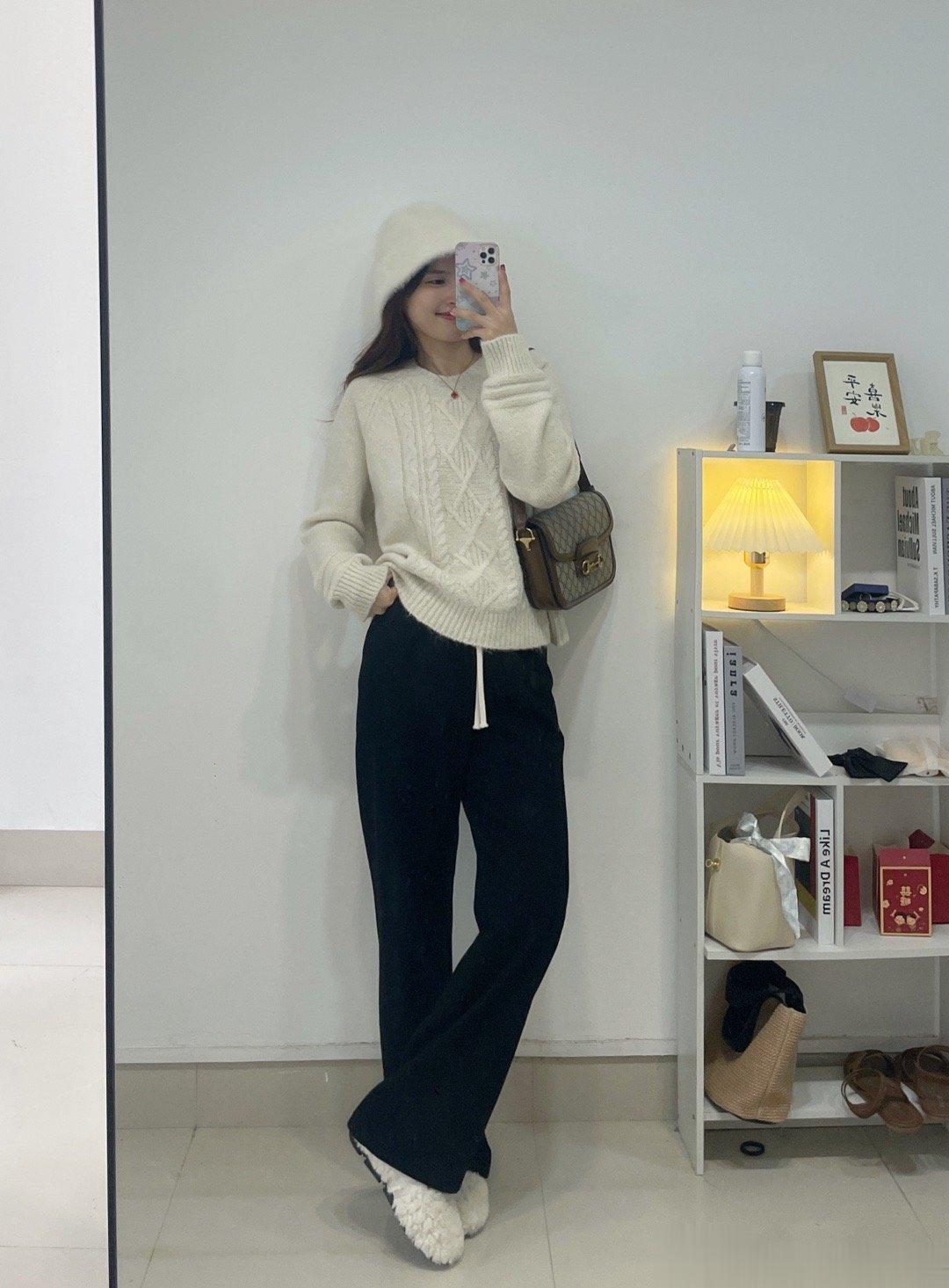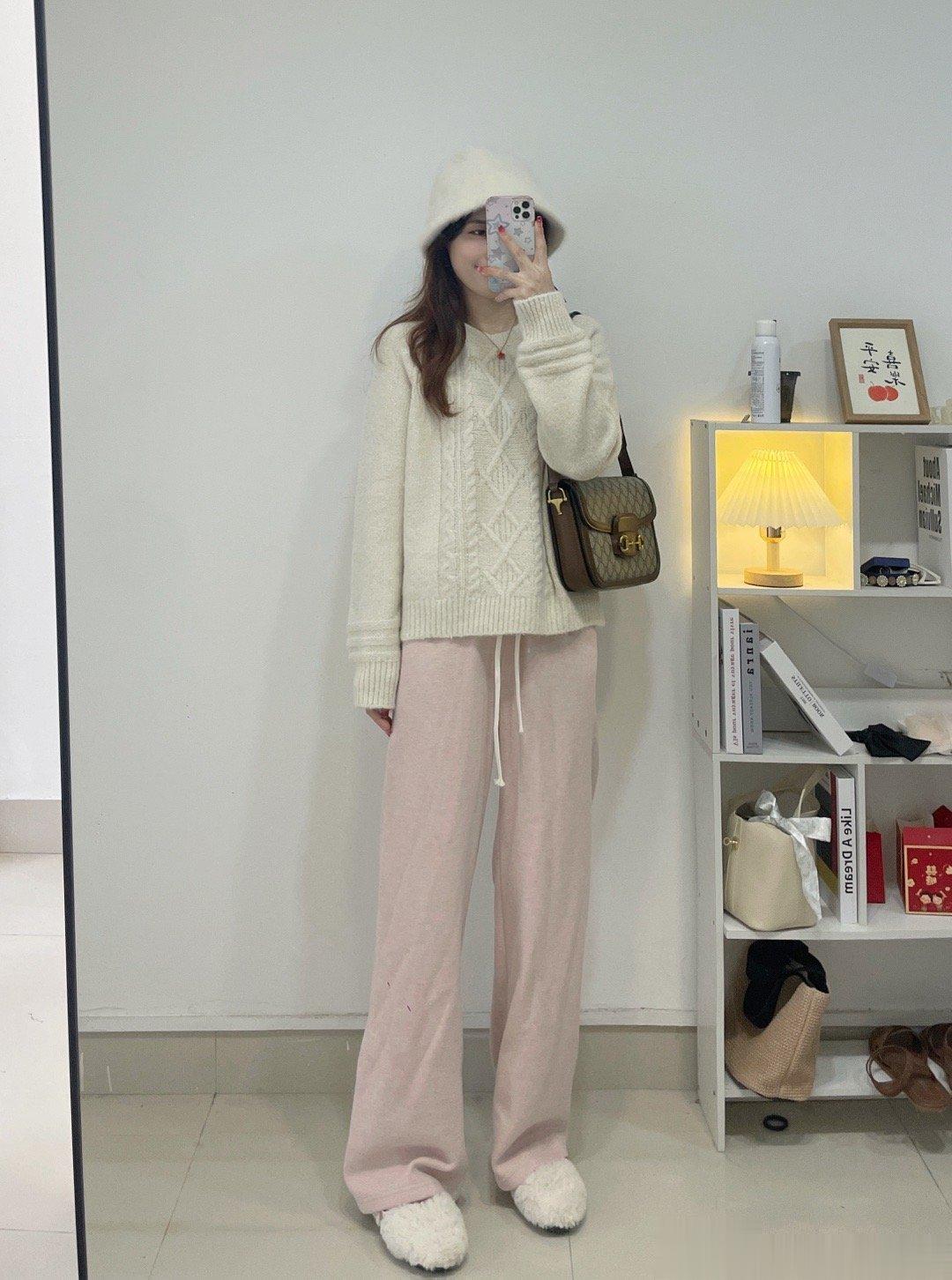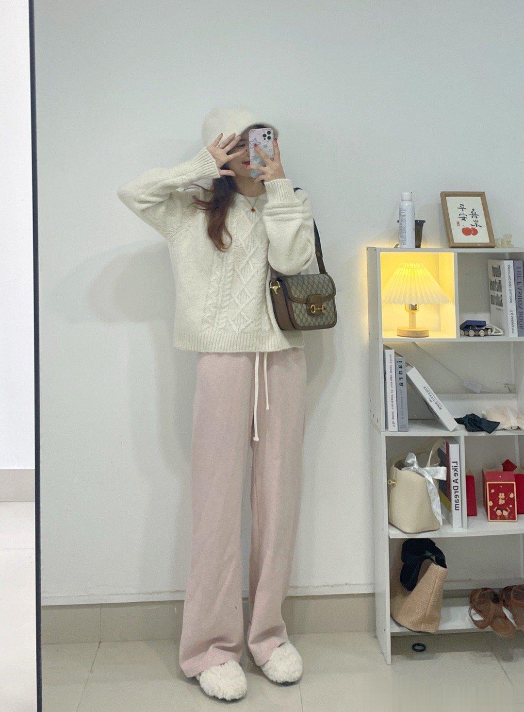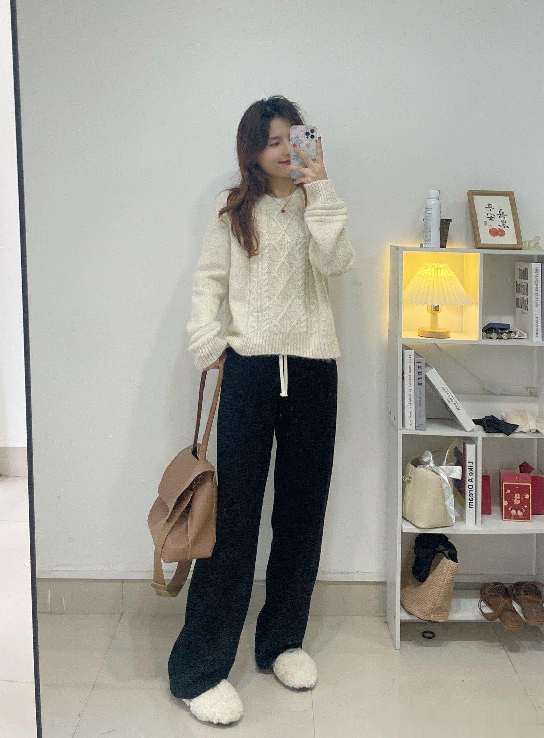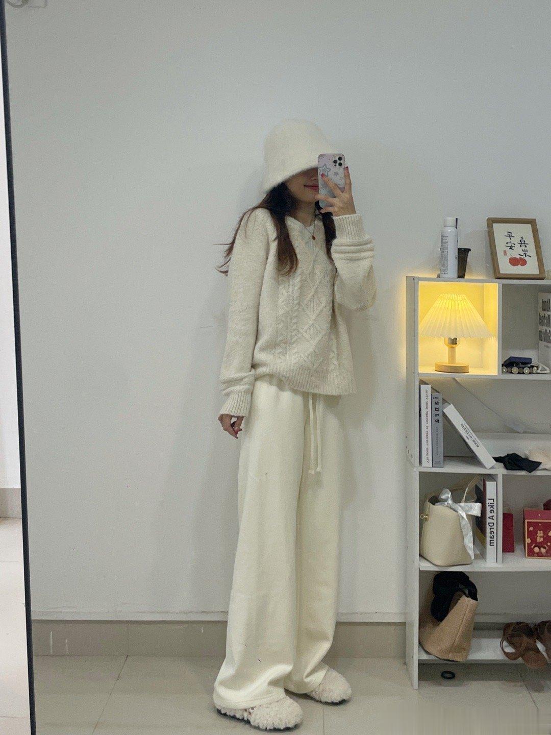 姐妹们啊,答应我,这条裤子一定要买~真的太好穿了,这个版型不同去年那款,今年的版型做的比较显瘦,不会那种很宽很显胖的那种,这三个颜色都是基础百搭款,我三色都自留了,糯叽叽的,里面是加绒的哦!