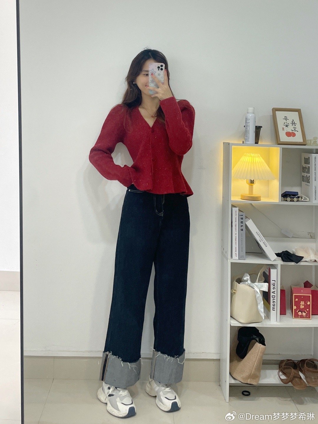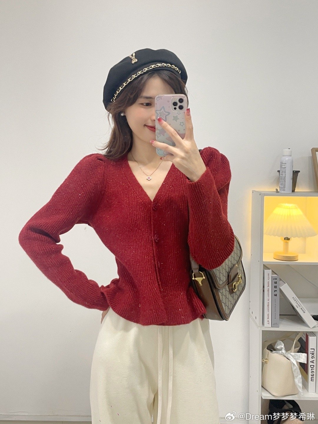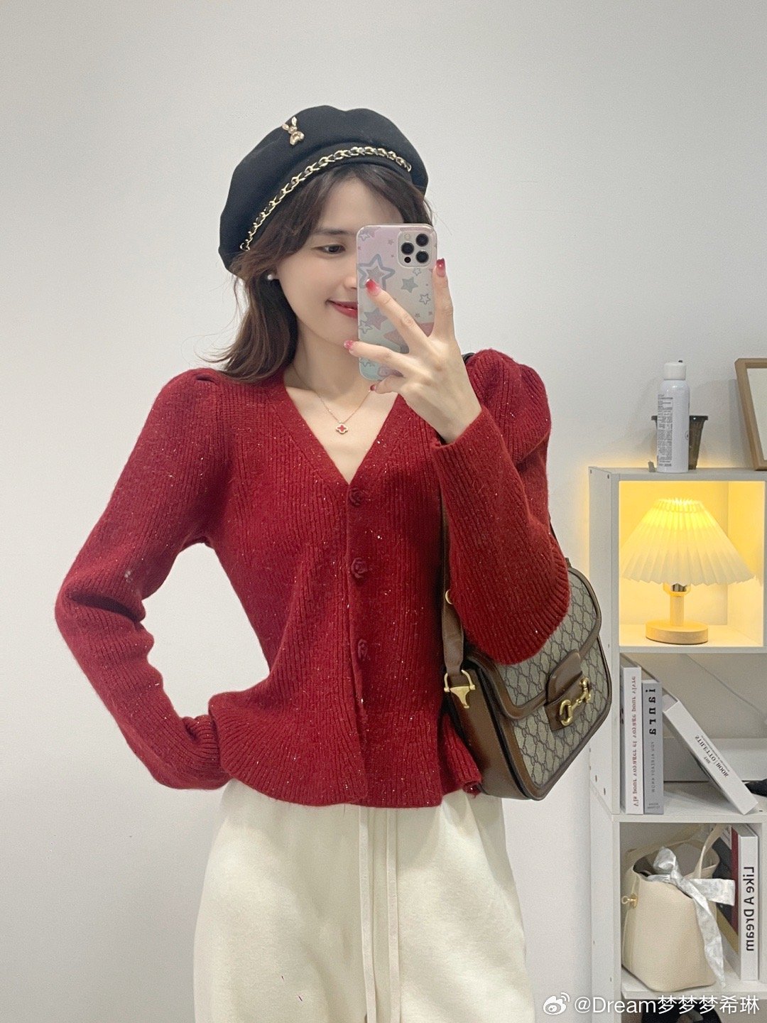 V领收腰的版型,下摆是做的荷叶边下摆,腰部收腰很显腰细,过年时候穿它脱掉大衣,整个亮眼,视觉上就显瘦10斤。扣子是可以解开的哦,微微的泡泡袖。扣子这个真的是绝美!是一个玫瑰扣!敲击精致好看。V领还显得脖子细长,真的很完美这件。