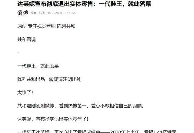 在2020年8月份,达芙妮就宣布了自己退出实体零售业务。