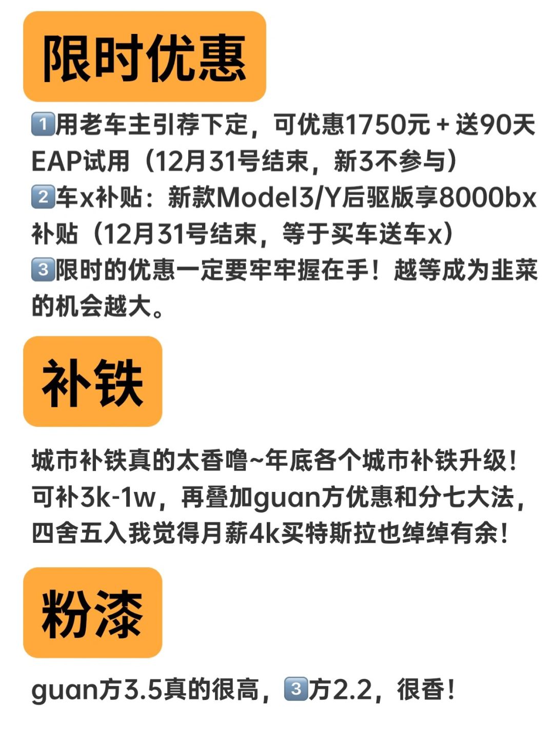 每个特斯拉车主错过这篇都会让小特伤心的好嘛😭 特斯拉的省米攻略,请人手一份‼️怒省1个达不溜 ✅限时优惠 ✅补铁 ✅粉漆 ✅充电桩 ✅上牌 ✅ETC ✅贴膜 ✅保显 ✅车品 - 关㊗️我,你真的很会开特斯拉! -