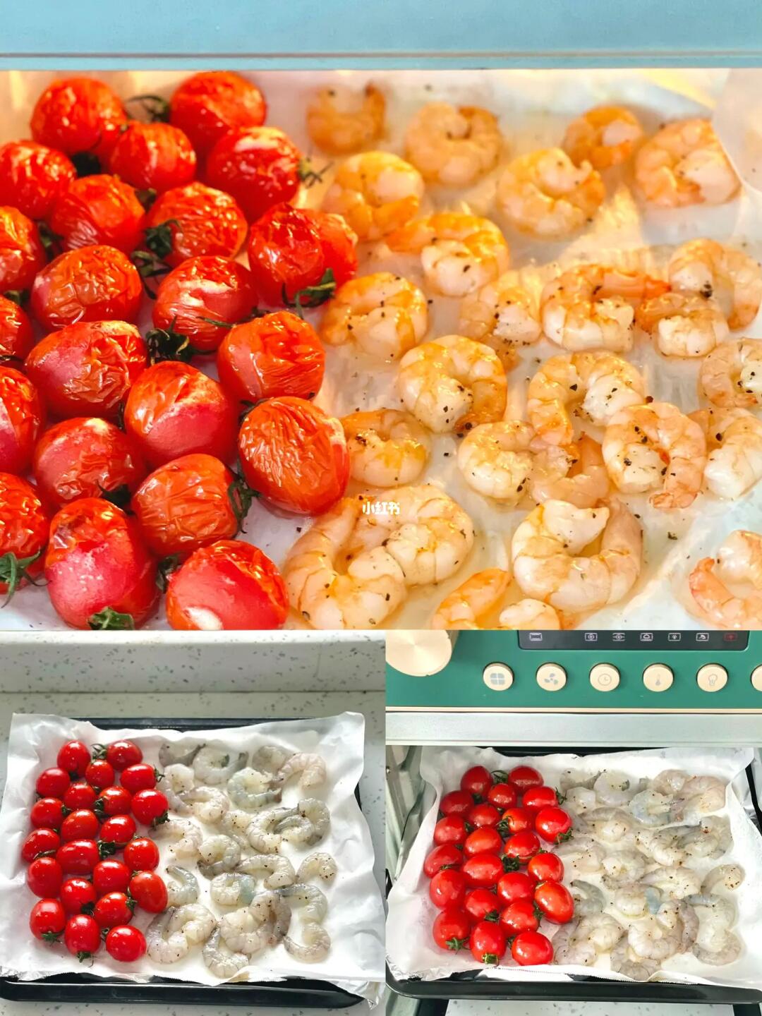 1️⃣虾仁和圣女果与黑胡椒、海盐、橄榄油混合均匀