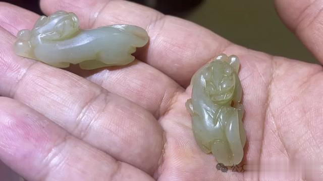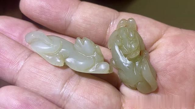 两个小玉兽,没有任何磕碰和裂痕,看不出来具体雕刻的是个什么,整体圆润光滑。