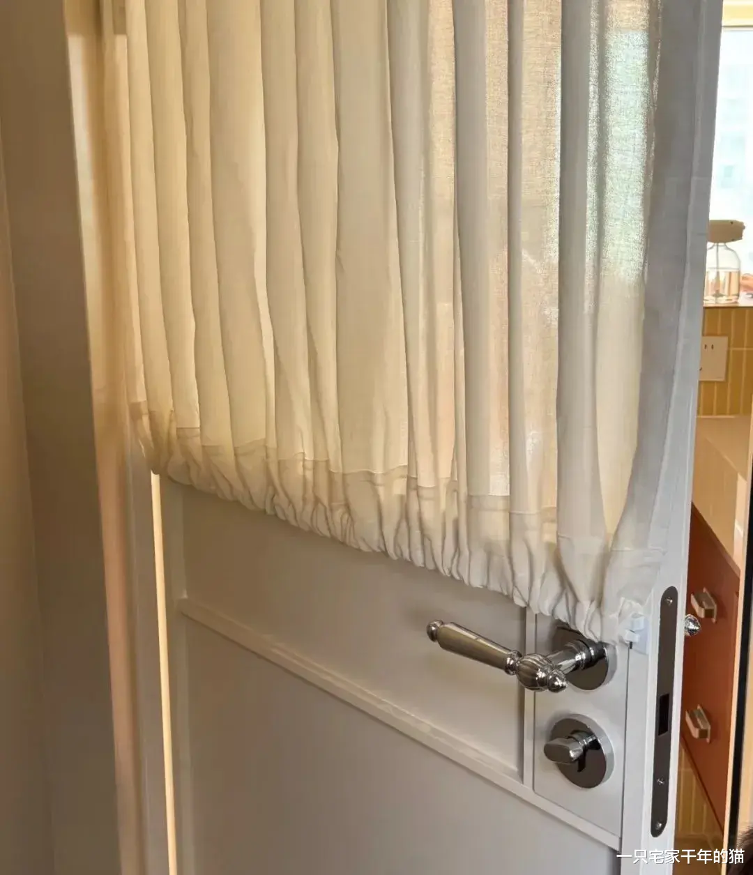 如果家里的玻璃门款式老旧急需改造,不妨考虑一下铁艺门框加白色绷纱,氛围感十足~