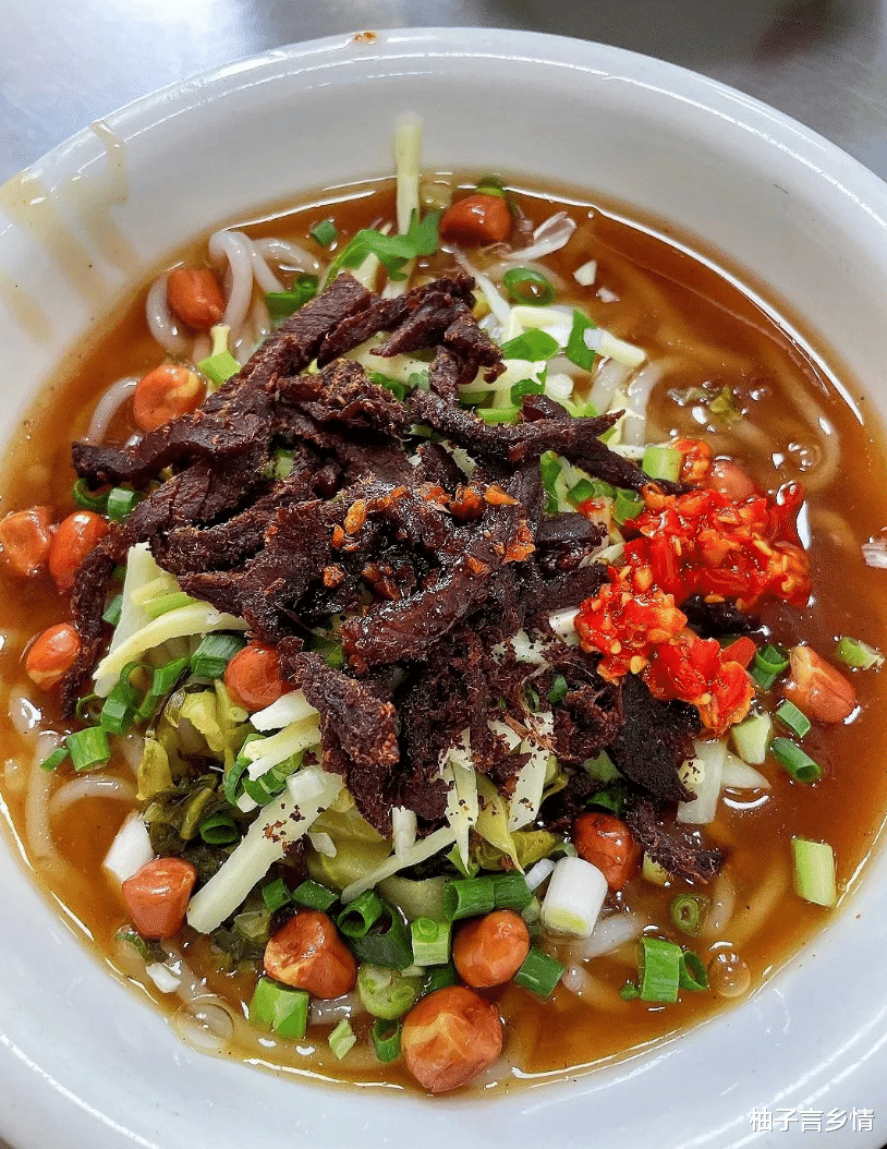 抱罗粉是文昌的传统小吃,与陵水酸粉相比,其汤头更为清淡鲜美,米粉也更粗一些,吃起来十分滑溜。抱罗粉的配菜丰富,牛肉干、花生米、酸菜、虾米等均可搭配其中,再浇上一勺用猪骨熬制的清汤,每一口都散发着鲜香的味道。除了汤粉,抱罗粉还可做成干拌的形式,筋道的米粉裹满酱汁,香味更为浓郁,深受喜爱重口味的朋友青睐。