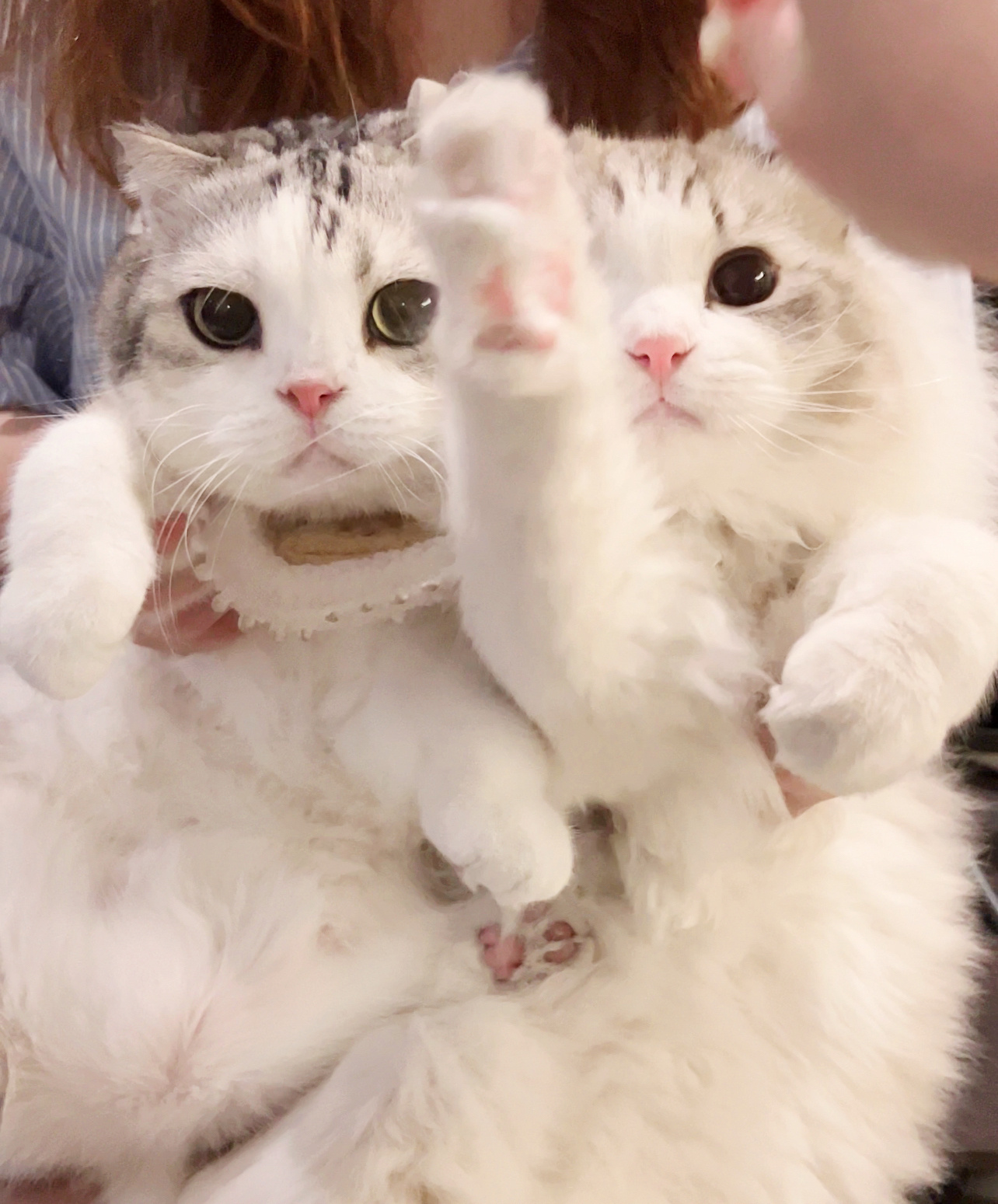 这几天我发现,泡芙躺在地上的时候,泡饭会走到她旁边,然后突然毫无征兆的砰的一下躺