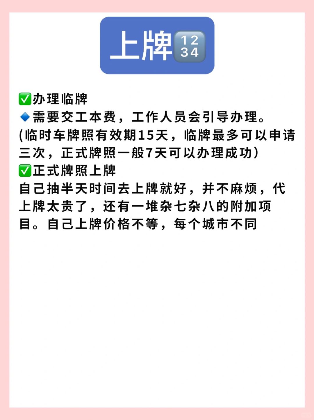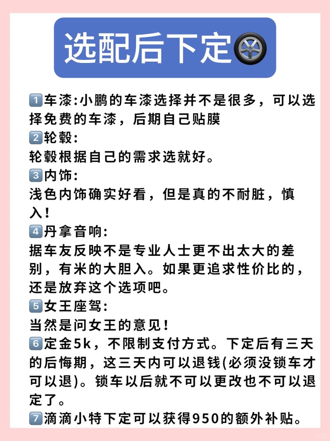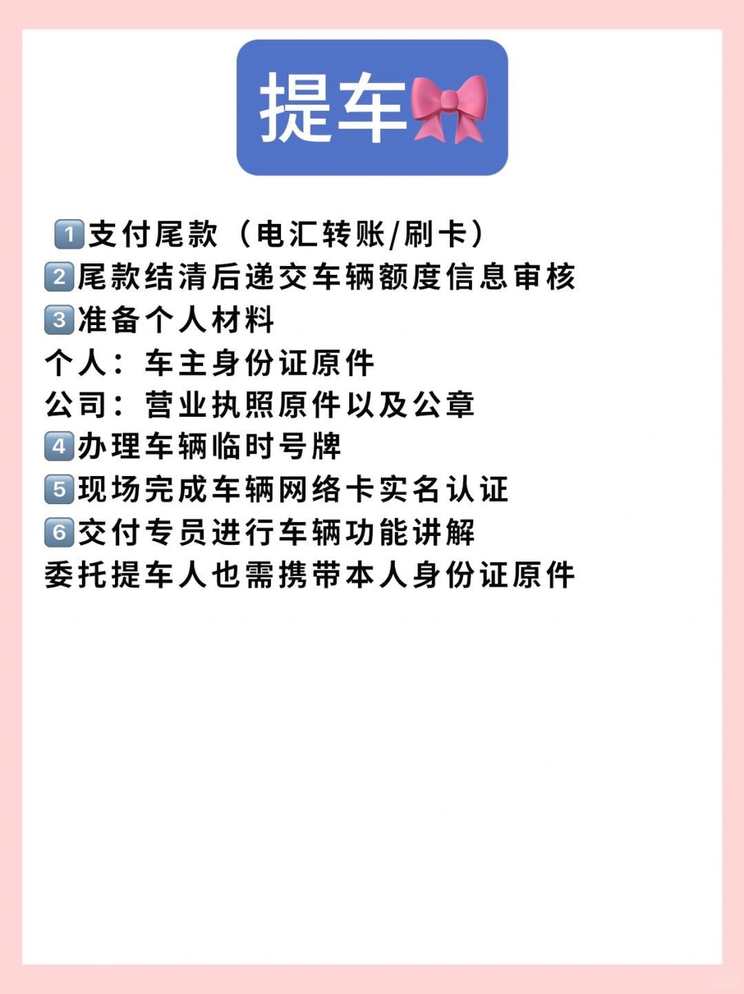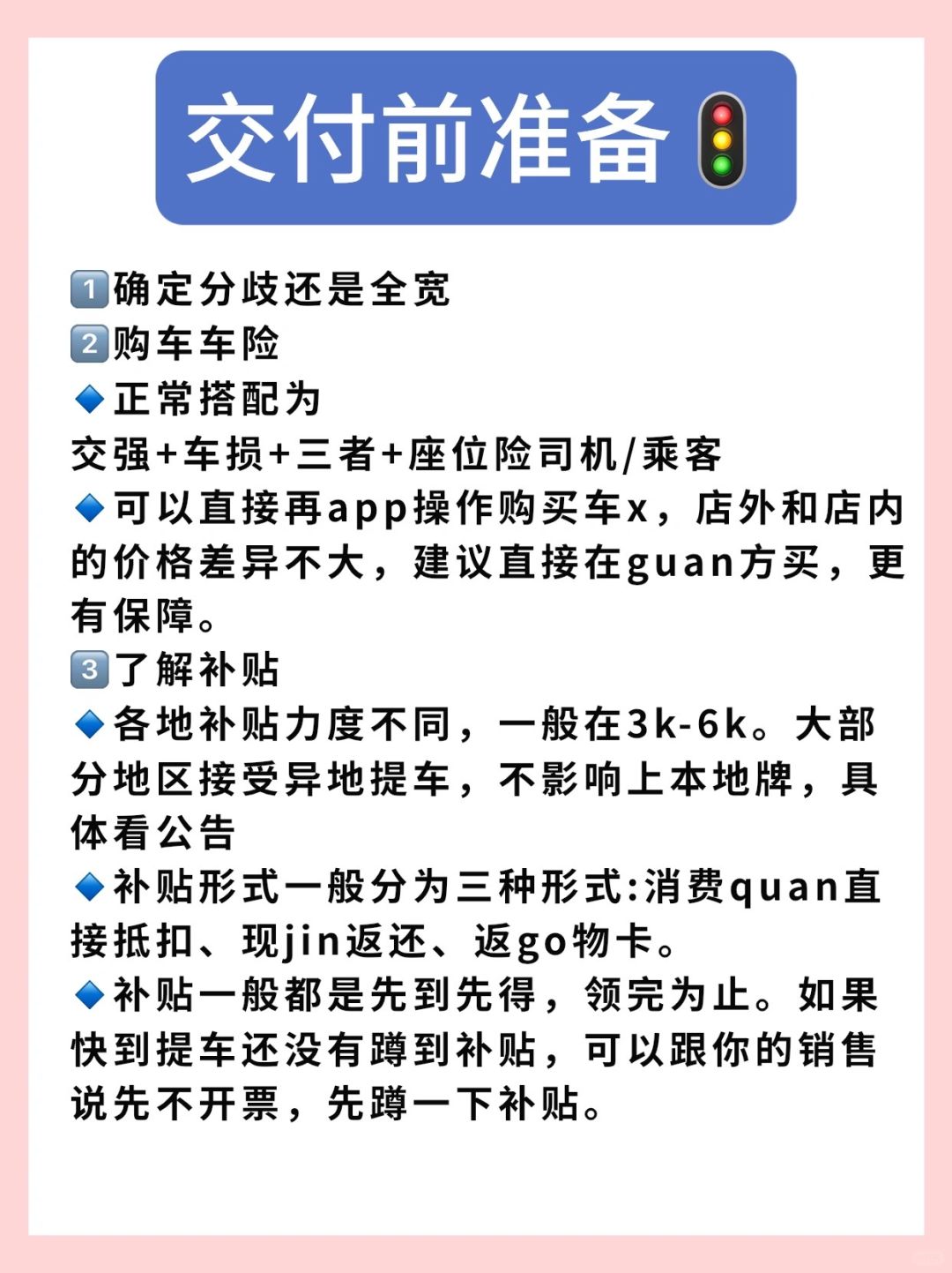 ✅车型 ✅试驾 ✅选配后下定 滴滴小特,下定可以获得950💰的补铁呦 ✅交付前准备 ✅充电桩 ✅提车 ✅验车 提车不验车真的太冒险!小特有验车清单,滴滴我我发给你呀。 ✅选号 新能源豹子号攻略,小特总结出一招选号技巧,大程度选到自己心怡的号码👍 ✅上牌 ✅贴膜 - 关🐷小特,每天分享电车小知识 让你从小白变老司机。 -