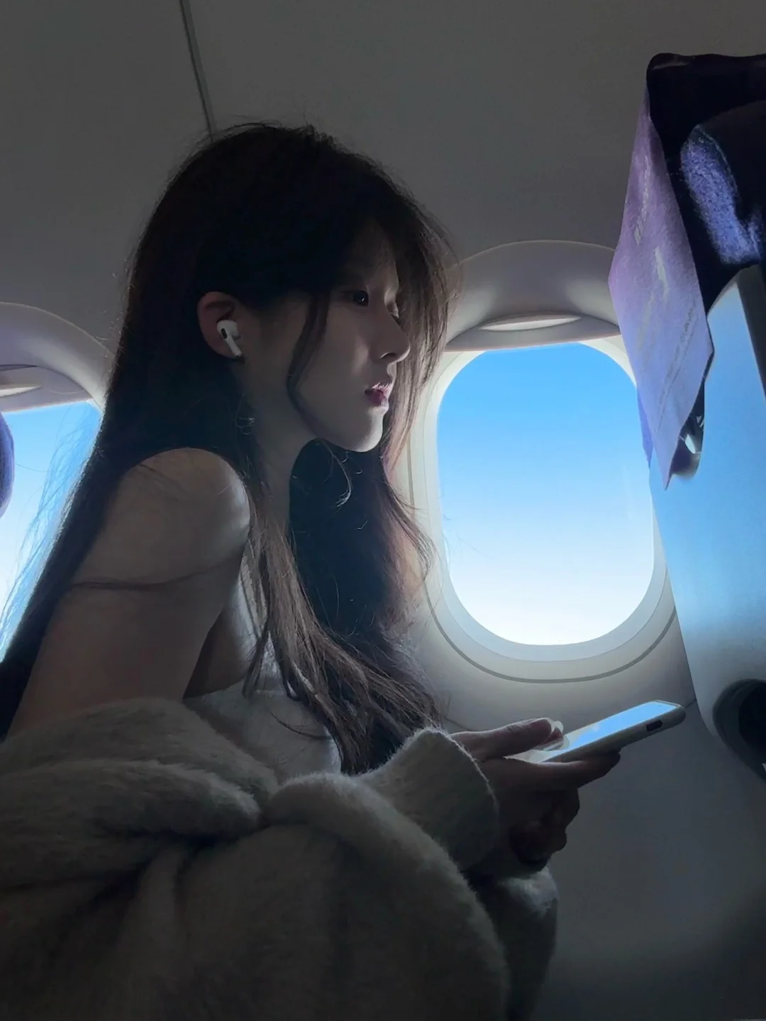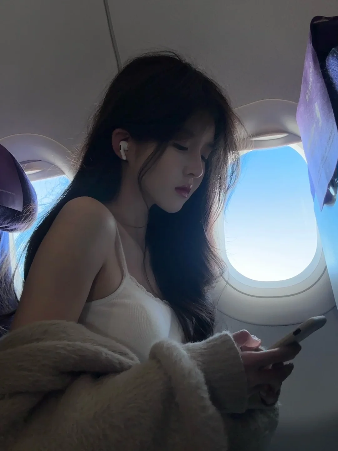 和姐妹坐飞机出去玩经济舱也可以拍出干净背景的照片