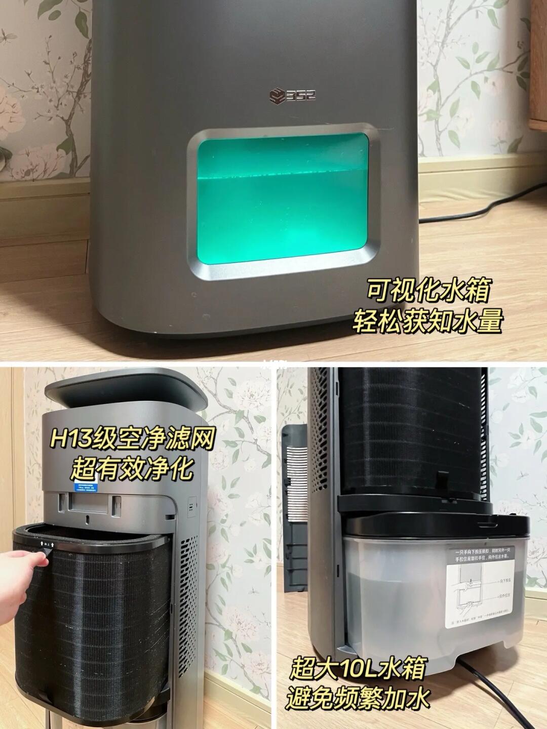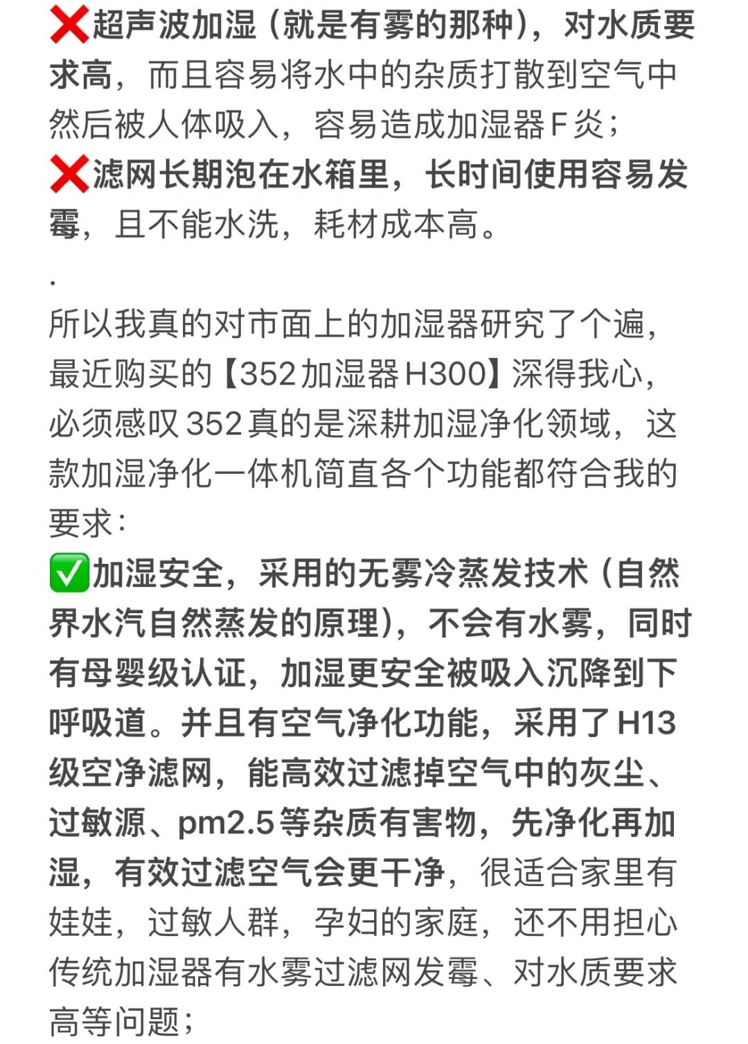 ✅有空净功能,能高效过滤掉空气中的灰尘、过敏源、pm2.5等杂质,先净化再加湿,空气会更干净,,很适合家里有娃娃,过敏人群,孕妇的家庭,还不用担心传统加湿器过滤网发霉、对水质要求高等问题;