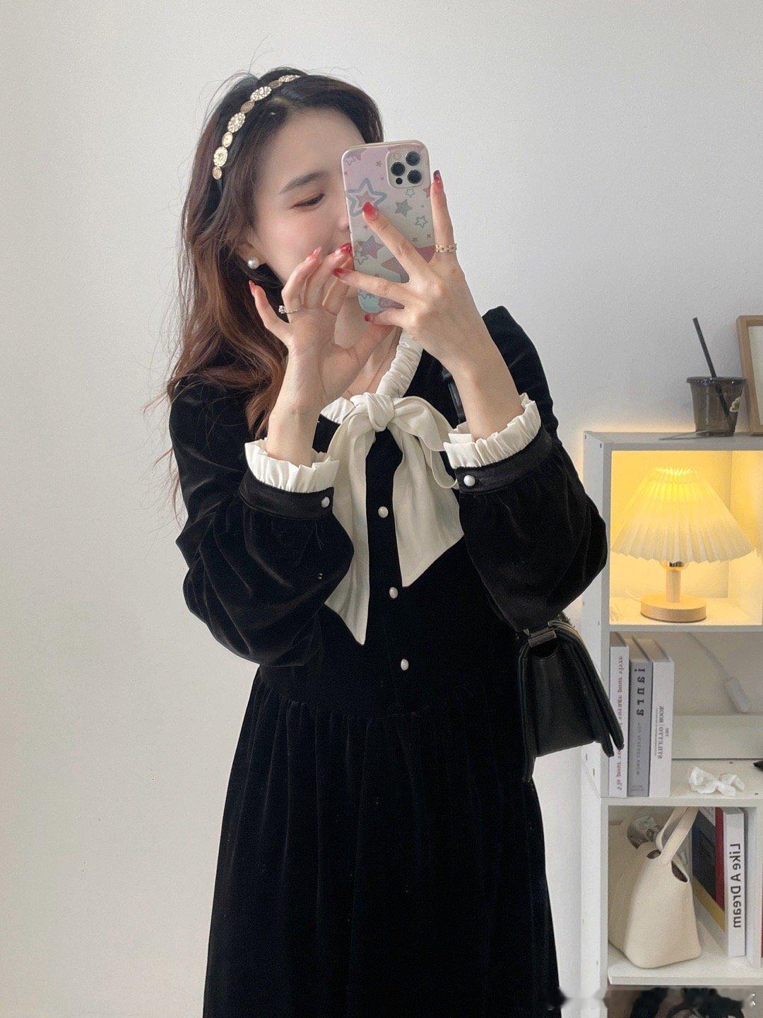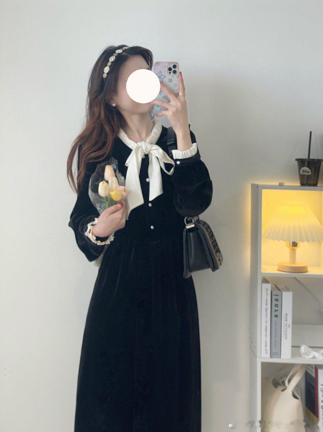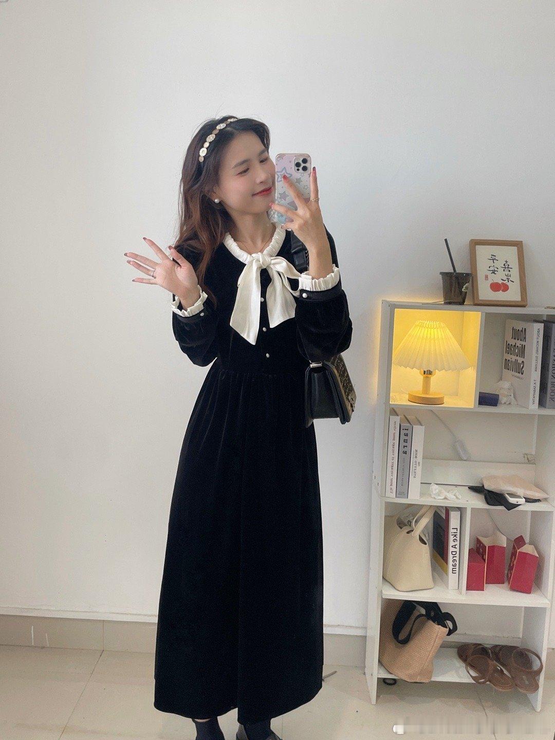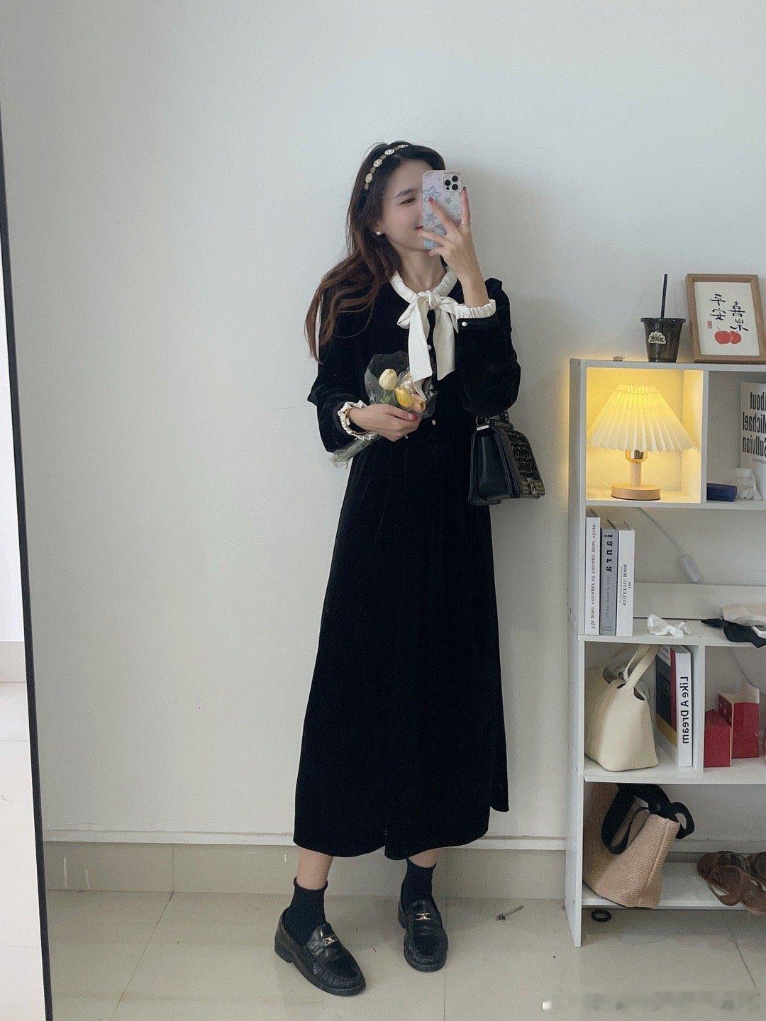 丝绒裙真的是无敌好穿的系列单品,参加年会聚会什么的超适合丝绒的材质就是很有质感的那种,但是丝绒面料都有一个通病,可能就是会稍微粘毛一点。这是没办法的事情[笑cry]