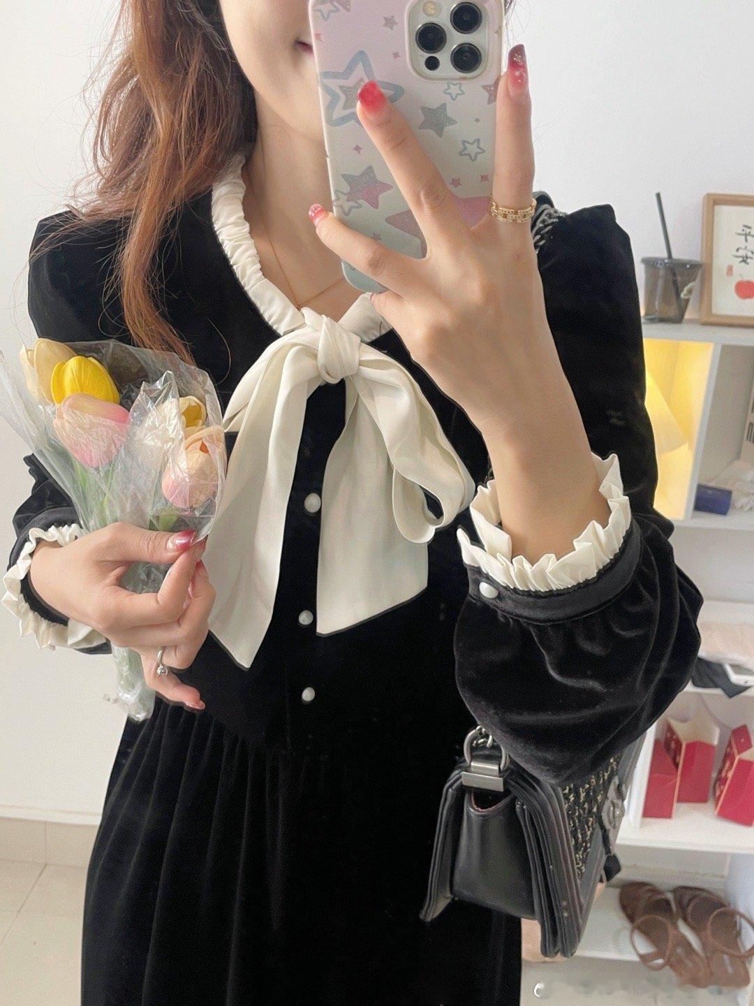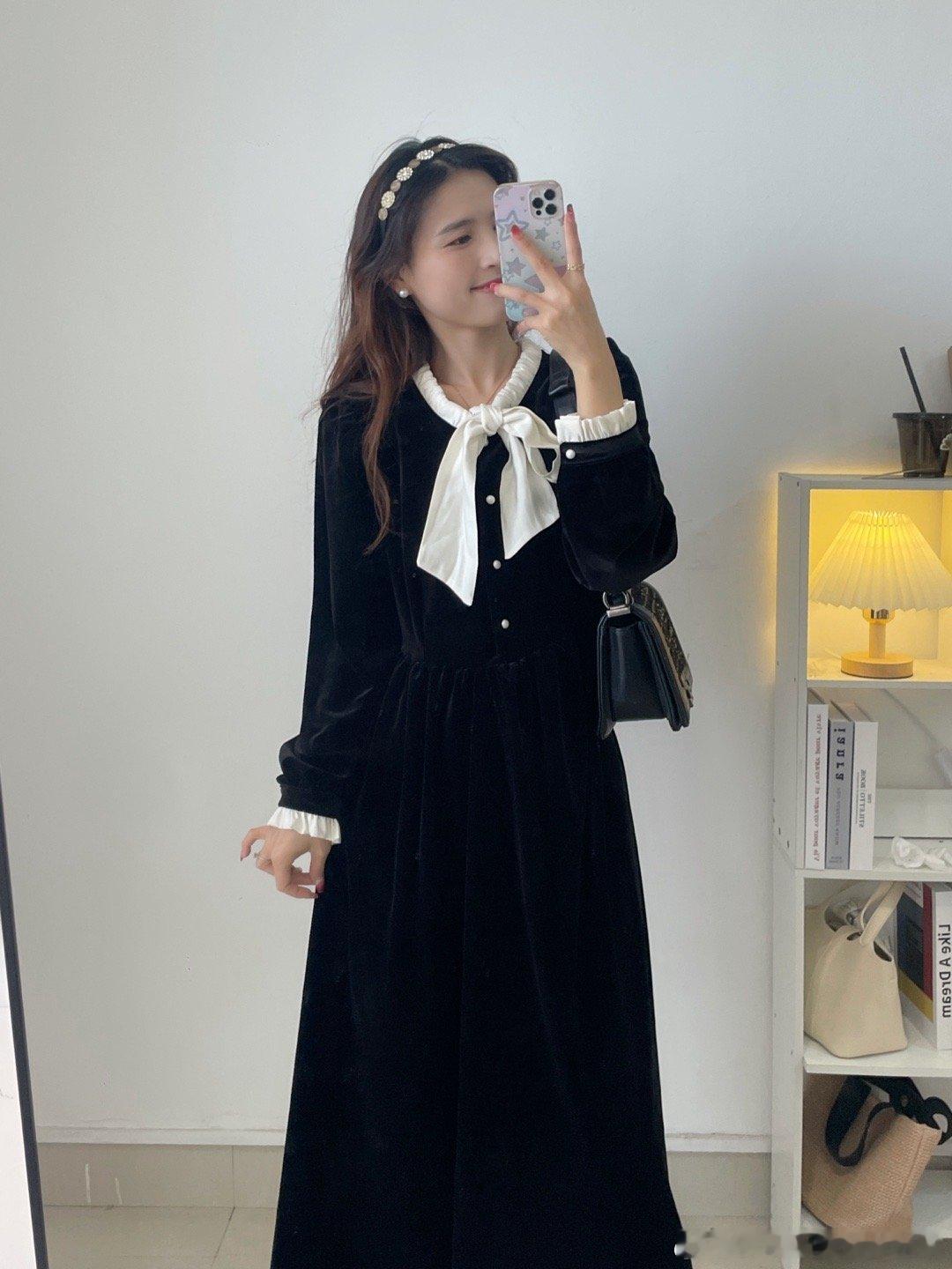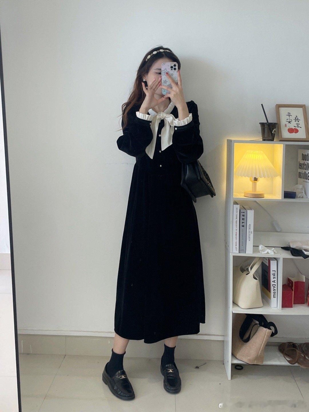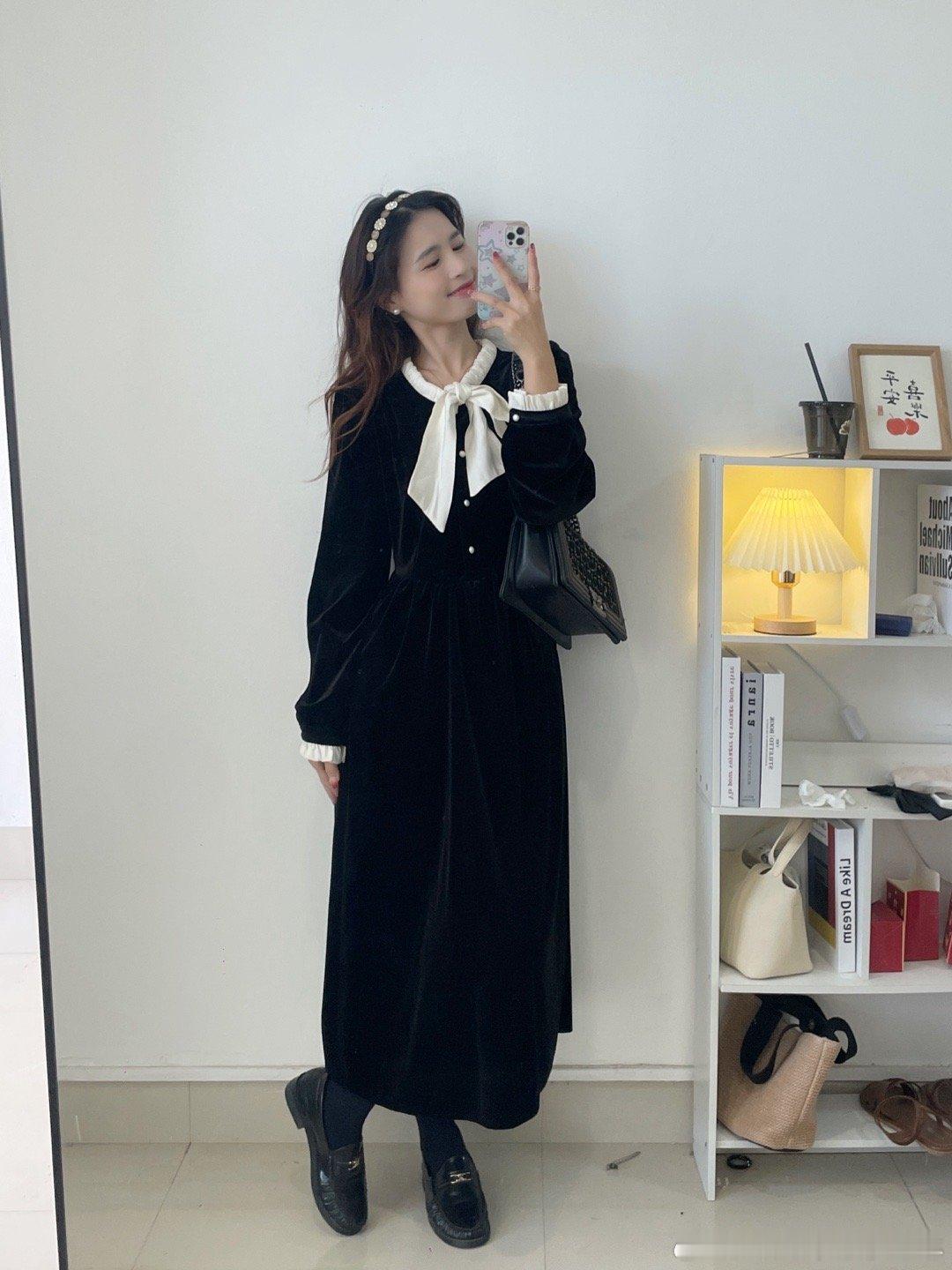 丝绒裙真的是无敌好穿的系列单品,参加年会聚会什么的超适合丝绒的材质就是很有质感的那种,但是丝绒面料都有一个通病,可能就是会稍微粘毛一点。这是没办法的事情[笑cry]