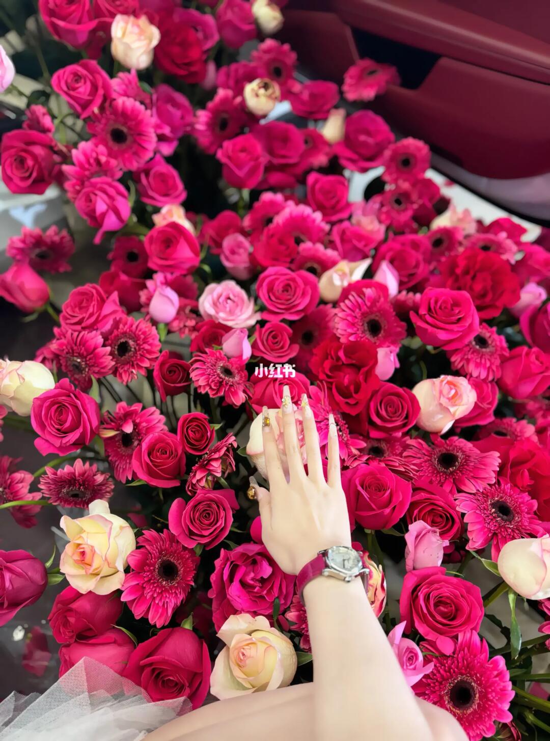 提车仪式布置的弗洛伊德玫瑰鲜花海也太好看了