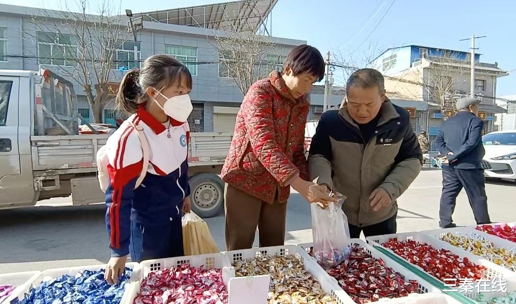 集市上,瓜子、糖果、蔬菜、水果、炒货干果、春联挂件等琳琅满目。吆喝声、讨价还价声、笑声交织在一起,形成了独特的交响曲。