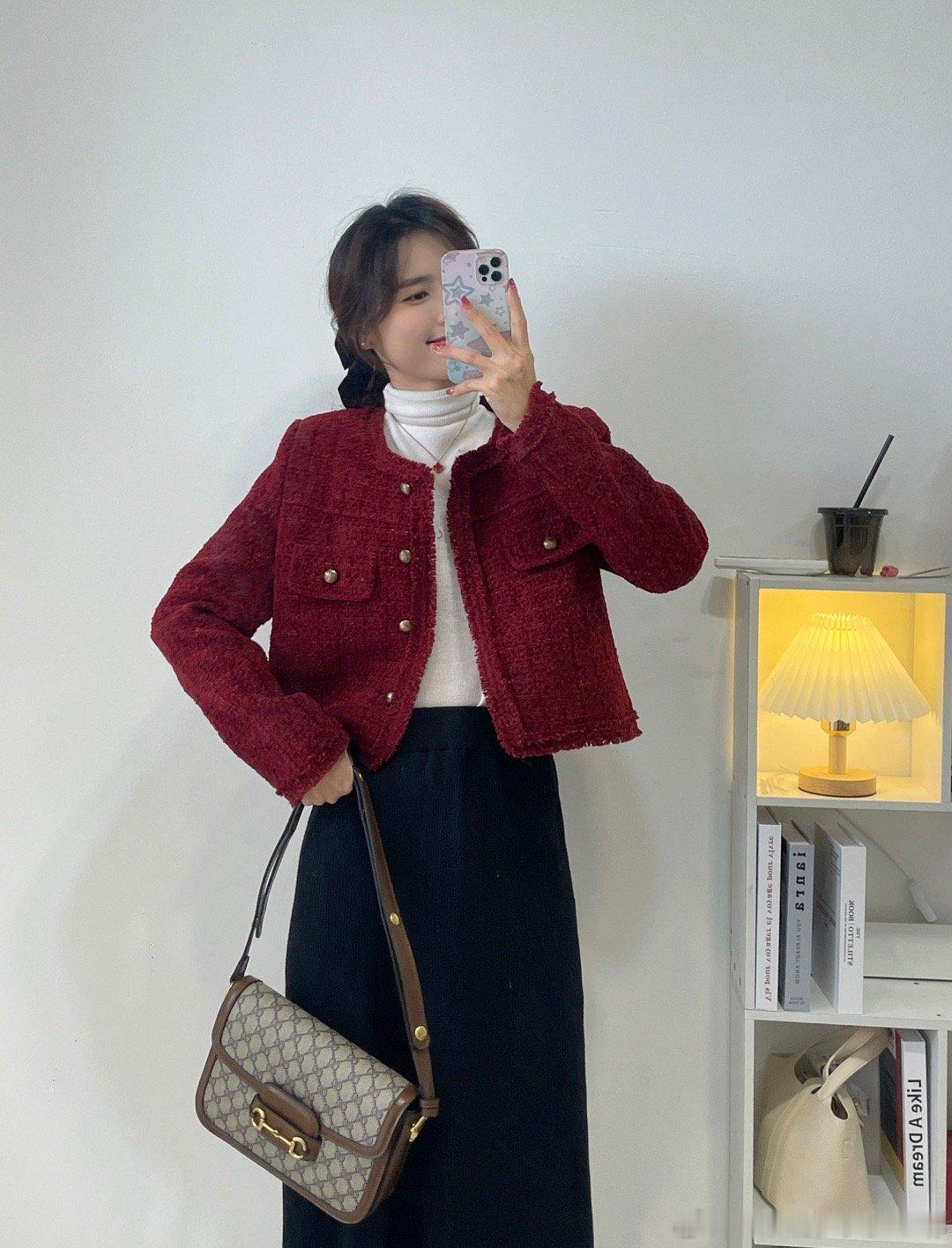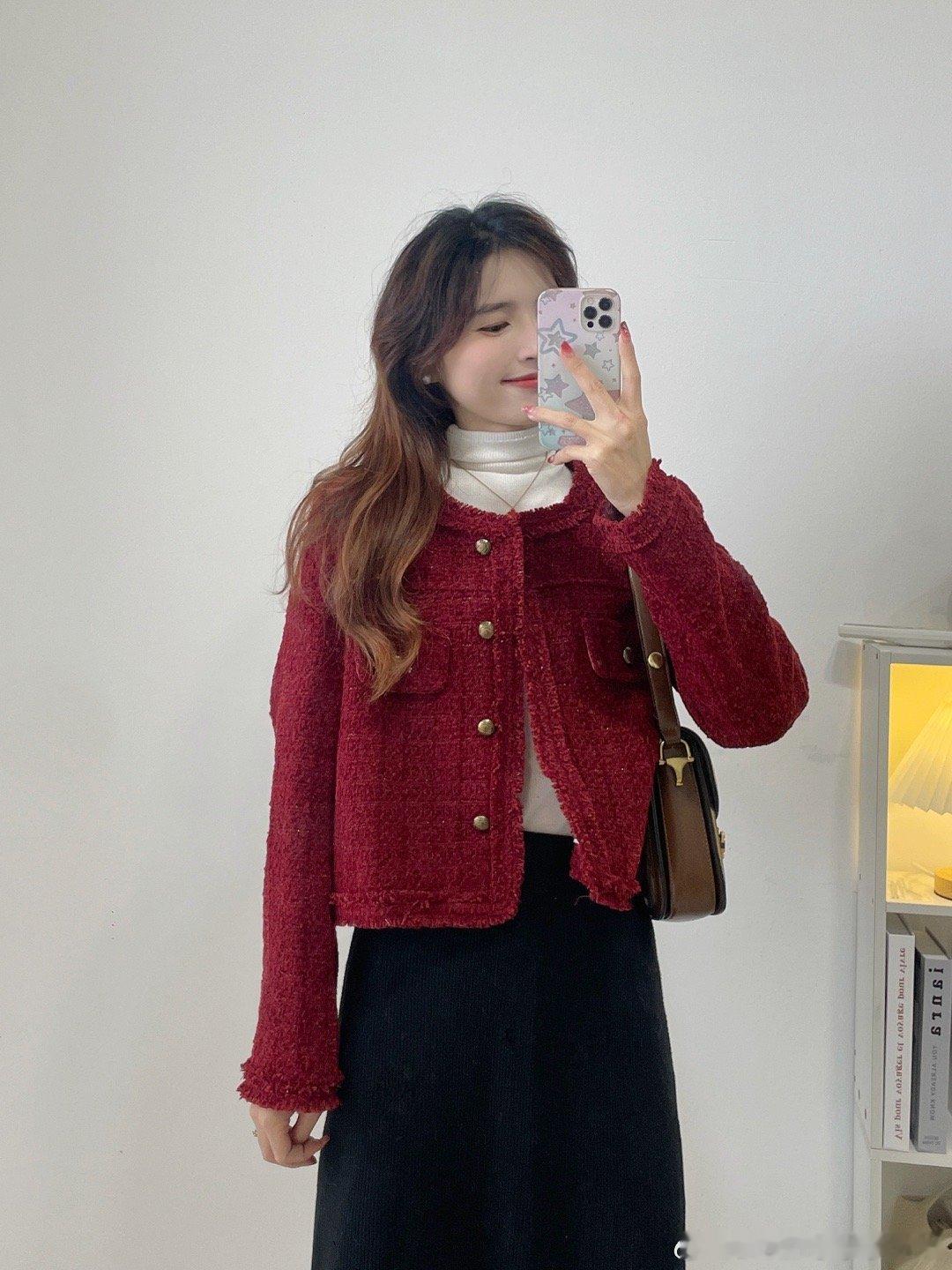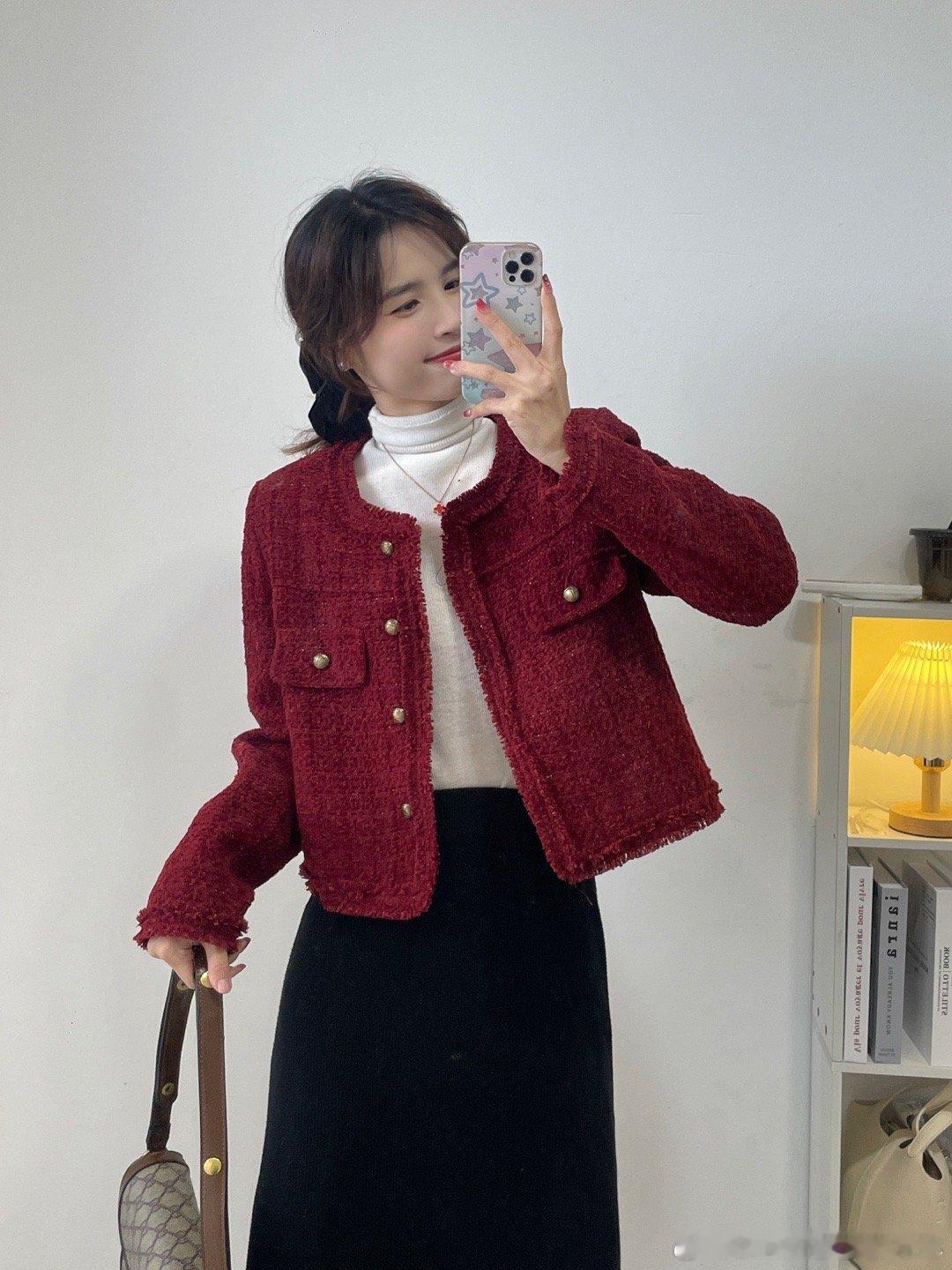 两个颜色哦,这款我的自留款,黑红都留下来了,面料里面也是带细丝,亮闪闪的,超好看,搭配半身裙,超级显高显瘦,前段时间穿着红色回家,被好多人夸,好瘦,好看。喜欢😍 然后这款是加棉的哦,有保暖度哦