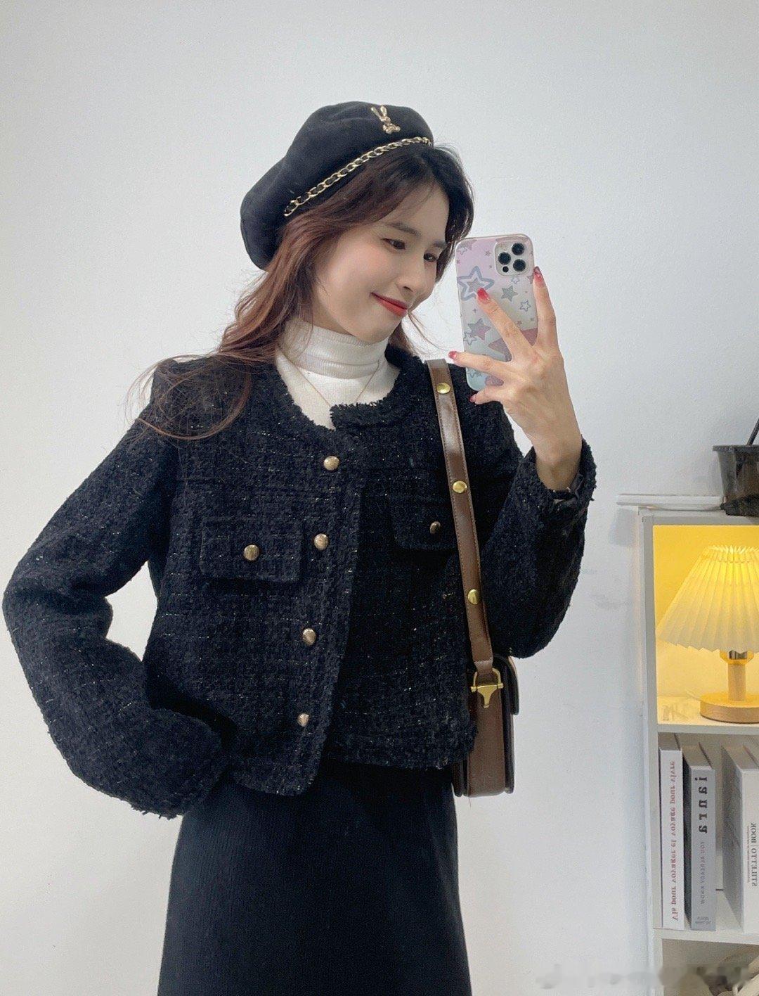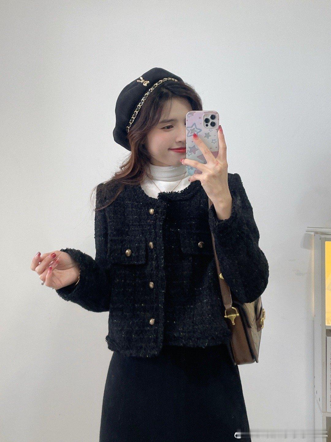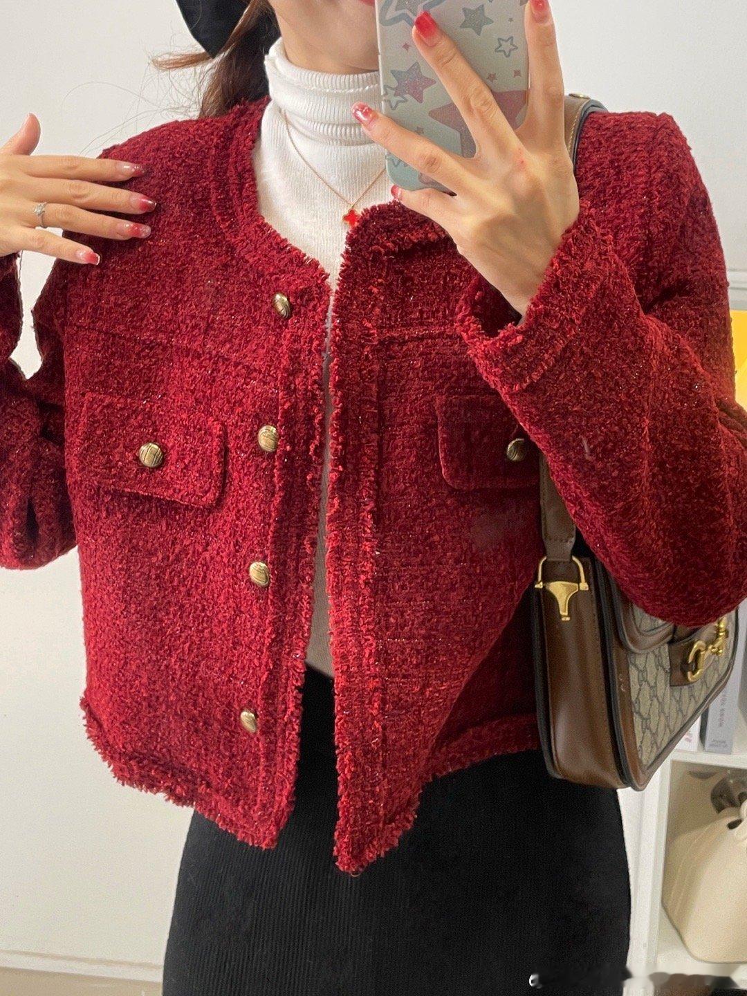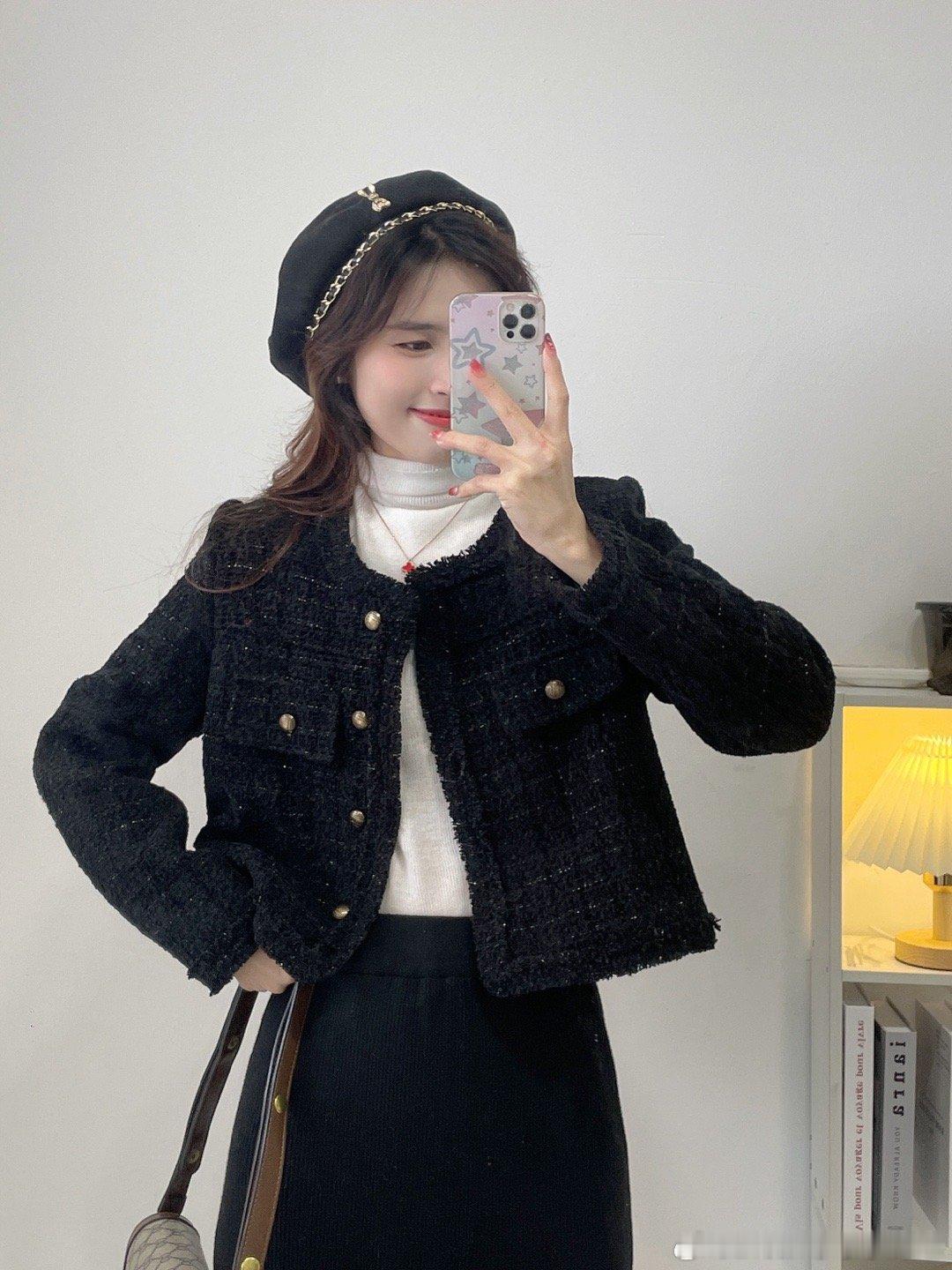两个颜色哦,这款我的自留款,黑红都留下来了,面料里面也是带细丝,亮闪闪的,超好看,搭配半身裙,超级显高显瘦,前段时间穿着红色回家,被好多人夸,好瘦,好看。喜欢😍 然后这款是加棉的哦,有保暖度哦